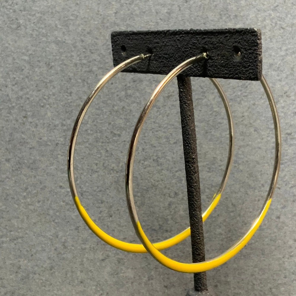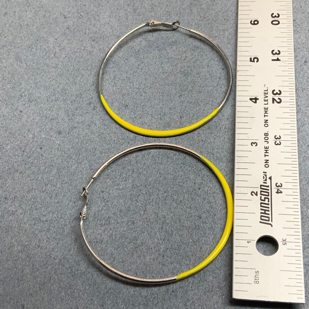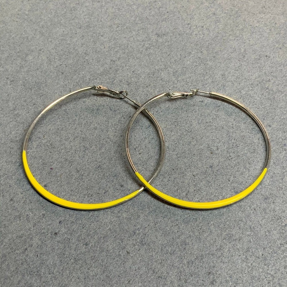 Large silvertone hoop earrings with latch hook closure and yellow enamel dipped! #RetroEarrings #SilverEarrings #YellowEarrings #Earrings #YellowHoopEarrings #SilverHoopEarrings #SilverYellowEarrings #YellowSilverEarrings #VintageEarrings #SoftGirl #CottageCore #50sEarrings #60sEarrings #70sEarrings #80sEarrings #90sEarrings #Sustainable #ChooseSecondhand * I cross-post to other platforms, so when you love the item, act fast! Please follow me and save me as a favorite seller, I post new listings daily! * Use the coupon (Currently code DPSAVE10IN2024) to save 10% by purchasing 2 or more items! Or please wait for a new invoice with combined shipping to save you money by bundling! * Add #DenisesPieces to your search to find my other items for more fabulous jewelry & a lot of other fun stuff. Please check out my store and you can search by category! * I do my best to note any flaws. See photos for close-ups & measurements, props & ruler not included! * Many items from estate sales or my own closet, all items sold as is. Smoke free & pet free home! * 080424 DFcl61