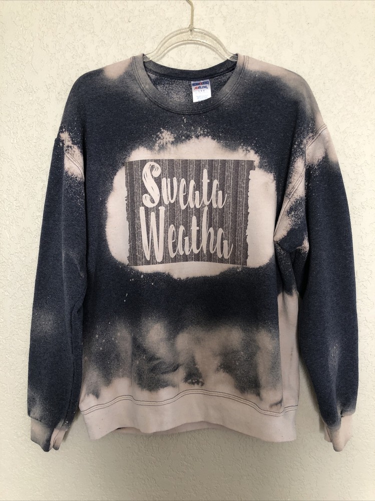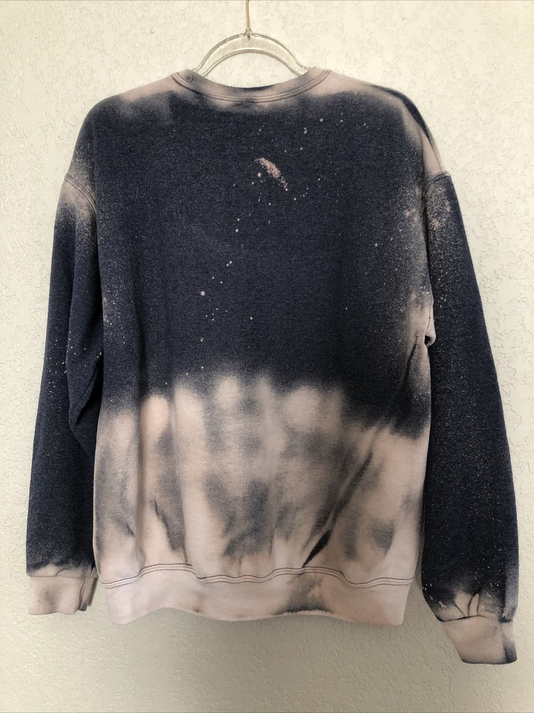 23” armpit to armpit; 27” length from top of shoulder to bottom hem. Large L Sweater Weather Tie Die Bleach Dipped Sweatshirt Pullover Blue Gray 1.