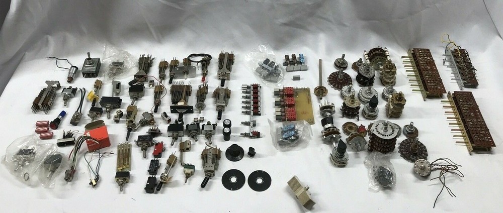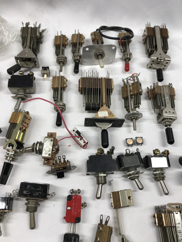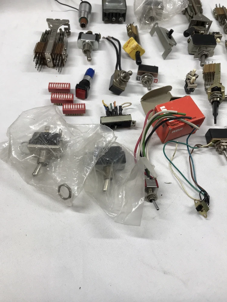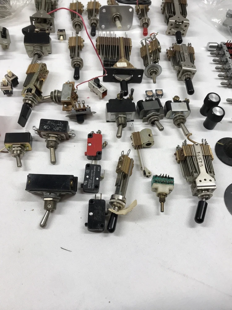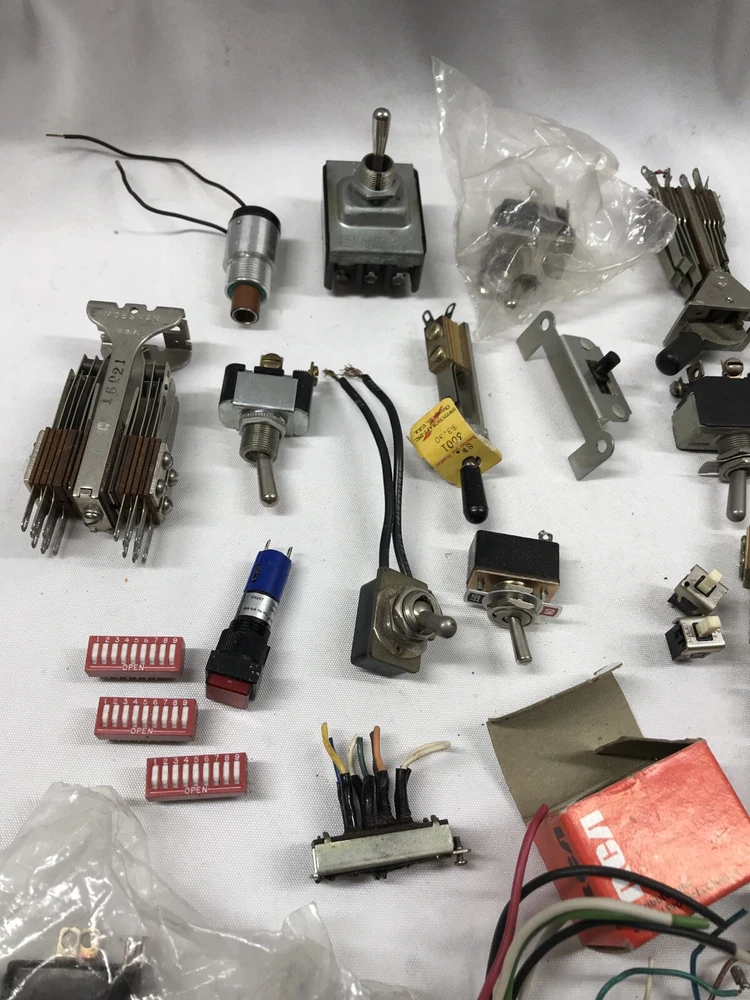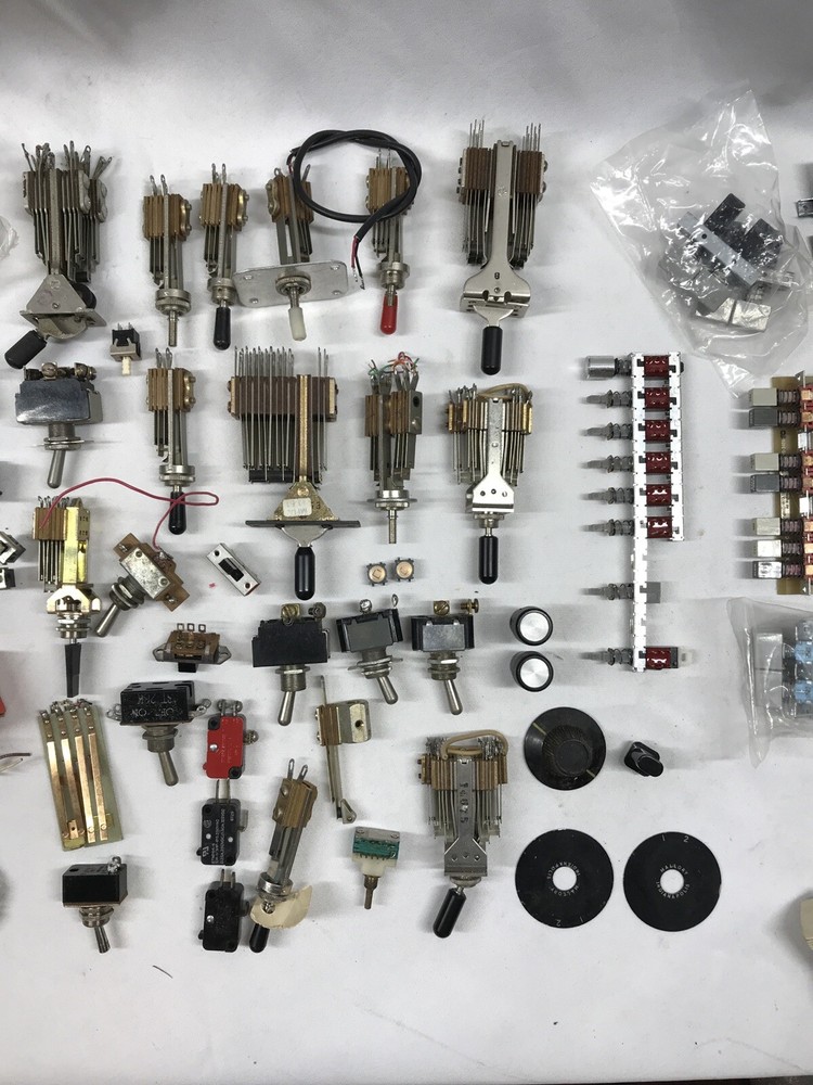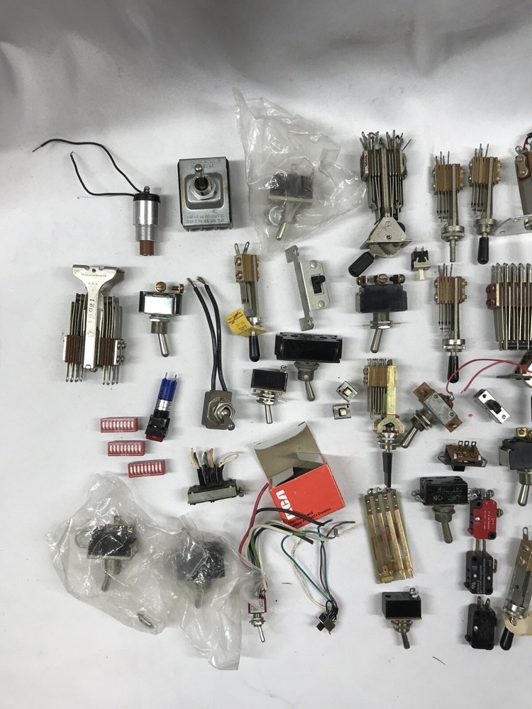 For sale is a large lot of vintage switches. The switches are of all types including rotary, toggle, push button, and slide swithces. Please see pictures for more details. Payments: We Accept payment by PayPal Only. Payment should be made within 24 hours. If payment is not made within 24 hours, we reserve the right to re-list the item. If you need more than 24 hours to complete a purchase, please contact us, and we will do our best to make arrangements for you. Shipping : We ship within 1 business day of receiving payment on your order. We ship Monday thru Friday. Our warehouse is closed on Saturday and Sunday most times. Orders placed after 10am ct will ship the following business day. We ship our items via USPS. Or FedEx Our delivery goal is 2-4 business days after your order has cleared. Please keep in mind the delivery dates on the eBay listing is an estimate. We can not be held responsible for delays due to weather or courier mistakes. If you paid with a PayPal e-check, it may take several days for your payment to clear. We cannot ship your item until your payment clears. We ship to Alaska and Hawaii PR and VI. Additional charges apply on large items or items not flat rate postable. Any order shipping to IL we have to collect IL Sales Tax International : We ship all eligible items to International addresses via USPS. We are not responsible for items held or confiscated by customs; nor are we responsible for any import taxes Duties or VAT Please call your country's customs department and ask them what your charges will be before you purchase this item from us, We have no control over what those charges are and will not mark this as a gift because that is illegal. Returns: We offer a 14 day return on most items. We will reimburse return shipping on defective goods. Please contact us prior to sending anything back for a return. At times we may refund prior to returning items that way The Buyer is responsible for the return shipping if an item was ordered incorrectly, or a refund is requested. Restocking fees up to 20% may apply depending on the item. About Us PremierDBS is here to bring you the best deals brand names and low prices, we got 'em. Come check out our eBay store , we're more than you expected. We pride ourselves on having the best price, selection, and the ABSOLUTE BEST Customer Service! We try to answer all questions within 1 business day or less. Please use the eBay message system when you send us a question as sometimes our spam filter may block your email. If you have a technical question on a product, please also visit the manufacturer web site - most have great sites that will answer your questions. Feedback We leave 5 star positive feedback once the transaction is complete and buyer leaves us feedback Customer service is important to us and many issues can be resolved simply by sending us an email. Prior to posting a neutral or negative feedback, please give us the opportunity to address your specific concerns. Location Rack RBJ, shelf 4 Box S