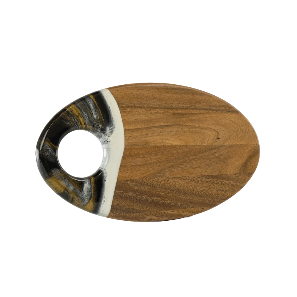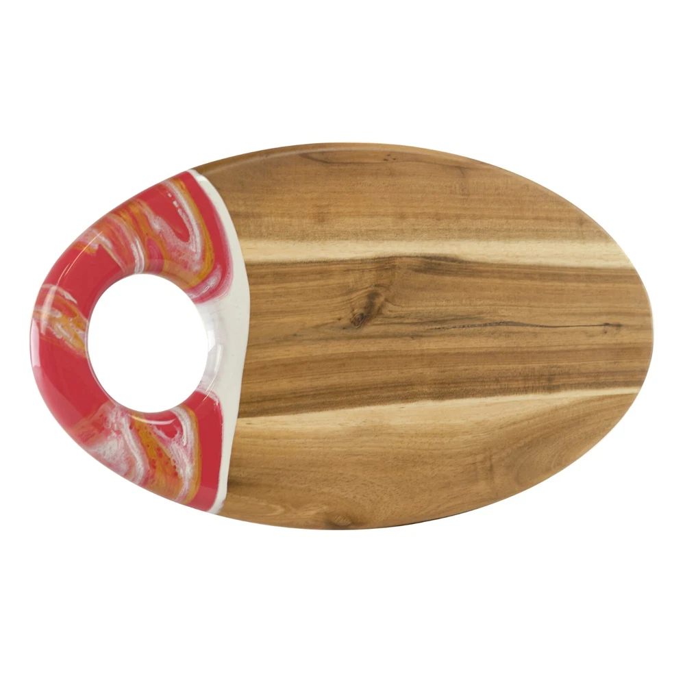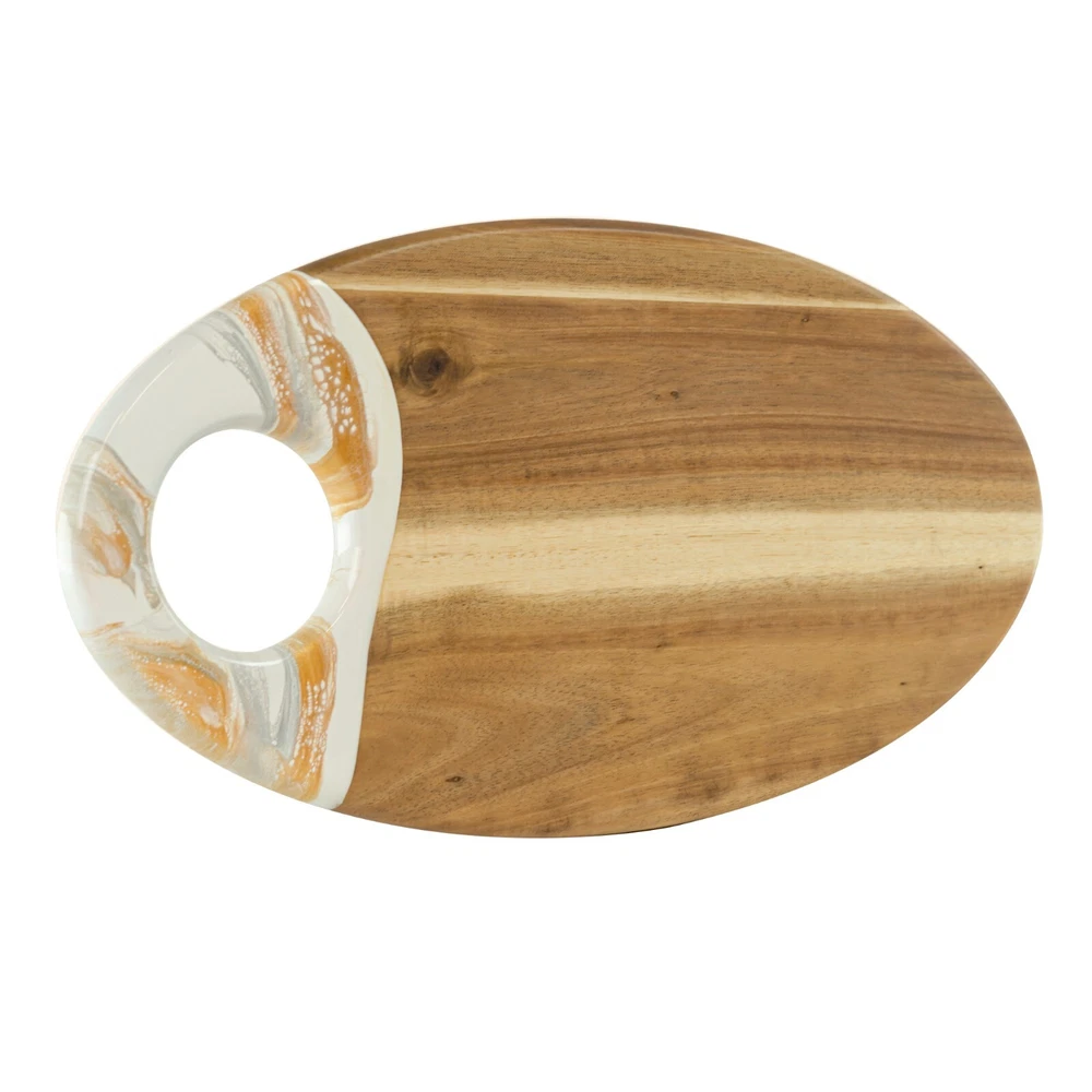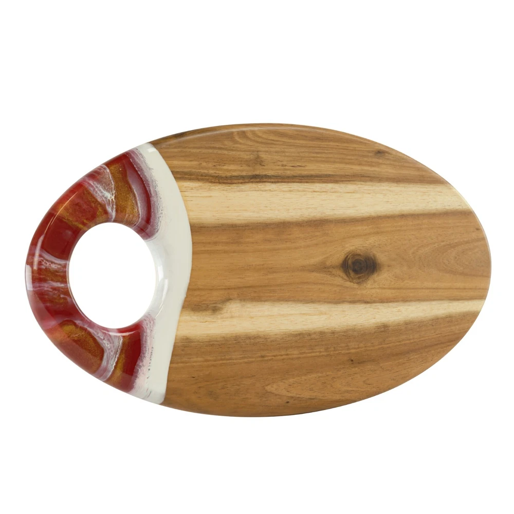 This acacia board is a game-changer for hosting! The generous size and smooth finish make it perfect for cheese, charcuterie, or appetizers, while the built-in dip holder keeps sauces tidy. I love how the rich wood grain adds elegance to any spread. The hanging hole is a nice touch for storage. Sturdy, beautiful, and practical—it’s become my go-to serving piece for gatherings!