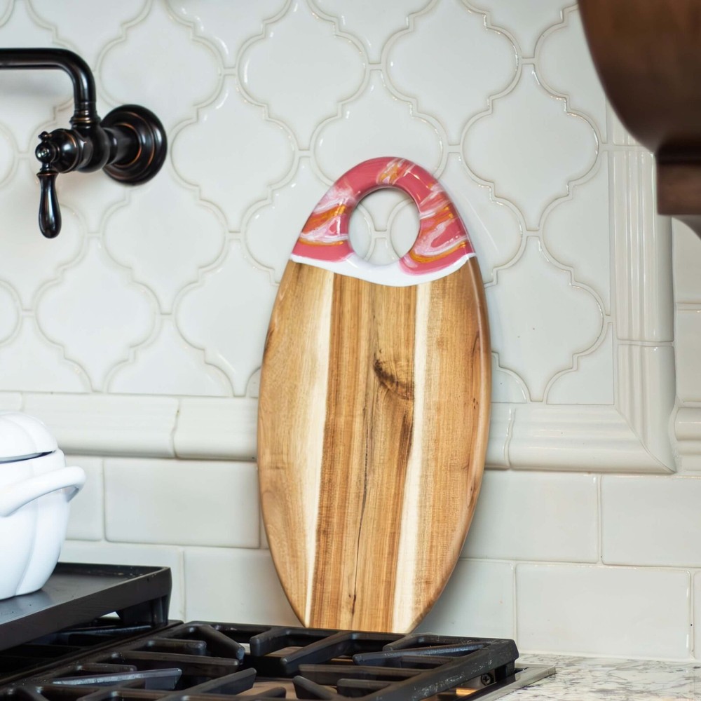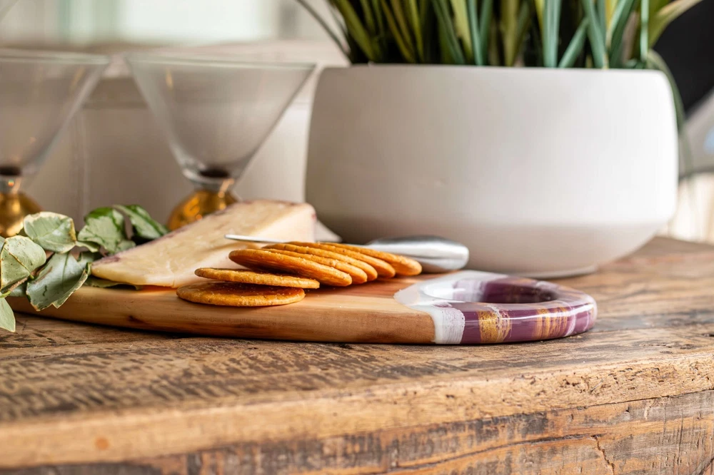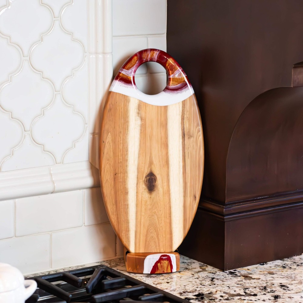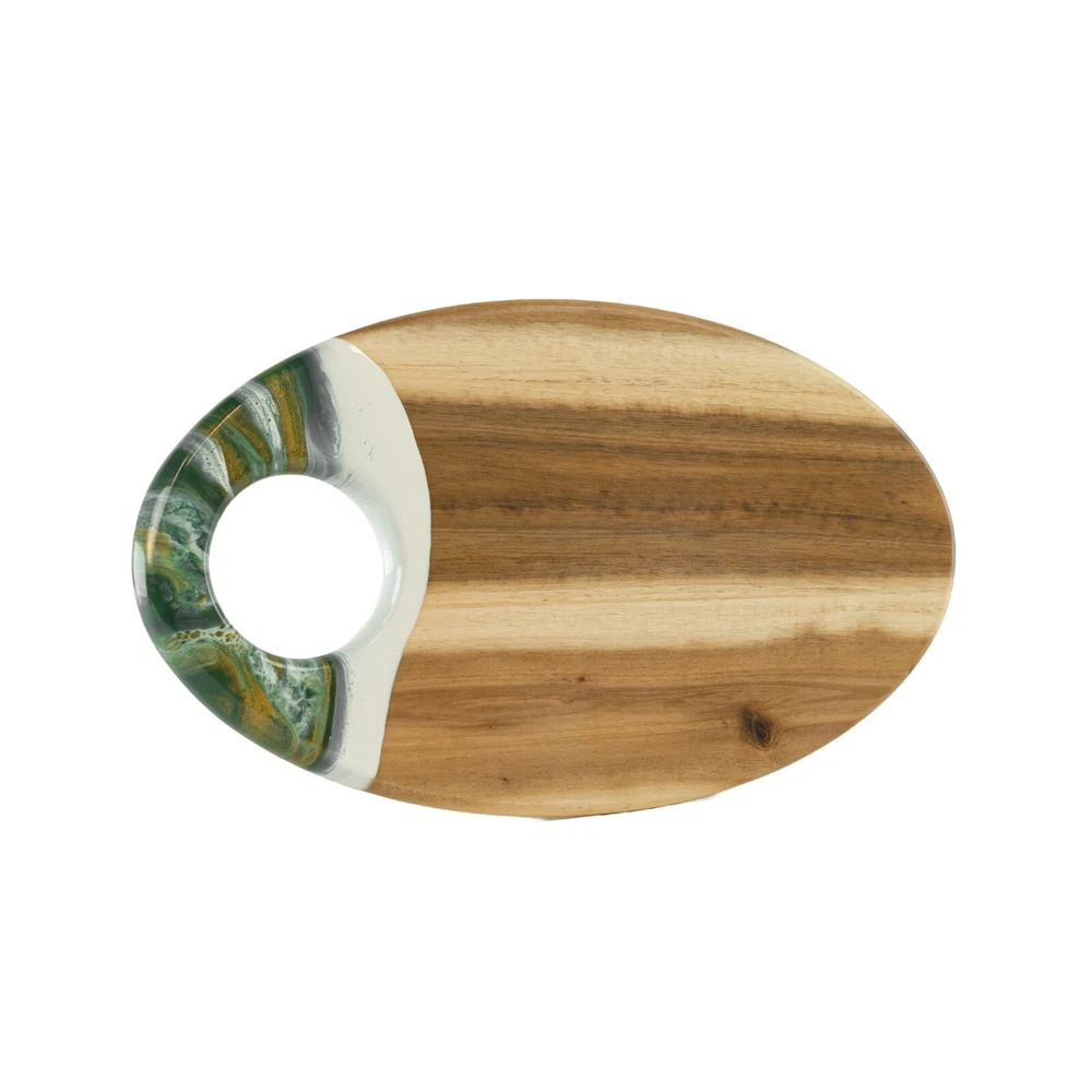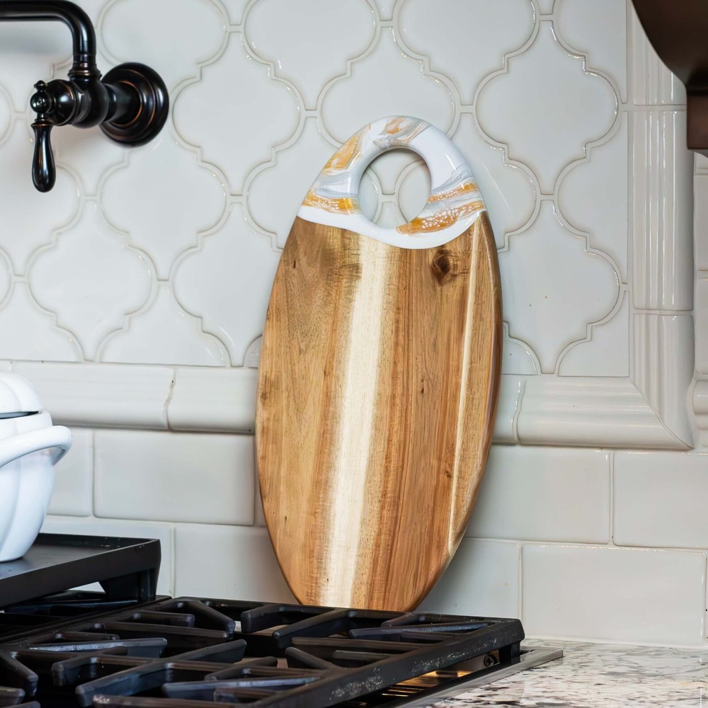 This acacia board is a game-changer for hosting! The generous size and smooth finish make it perfect for cheese, charcuterie, or appetizers, while the built-in dip holder keeps sauces tidy. I love how the rich wood grain adds elegance to any spread. The hanging hole is a nice touch for storage. Sturdy, beautiful, and practical—it’s become my go-to serving piece for gatherings!