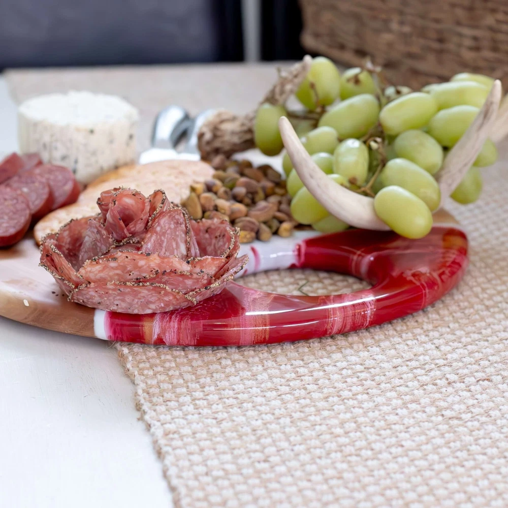 This acacia board is a must-have for entertaining! The natural wood grain is stunning, and the built-in dip holder keeps everything tidy. Perfect for serving cheeses, appetizers, or desserts—it’s both practical and beautiful. The hanging hole is a nice touch for easy storage. Love how it elevates any gathering!