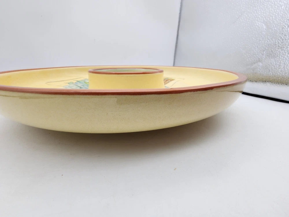 This large round chip and dip dish from MOLDE is the perfect addition to any kitchen or dining set. With a diameter of 34.7 cm and a height of 5 cm, it is ideal for serving chips, dips, and other small snacks. The dish features two compartments, making it easy to separate different food items. Its contemporary style and shiny finish will complement any home decor. Made of high-quality stoneware ceramic, this chip and dip dish is durable and long-lasting. The lemon yellow color adds a pop of color to any table setting and is perfect for all occasions. Whether you are having a snack or serving appetizers, this dish is sure to impress.