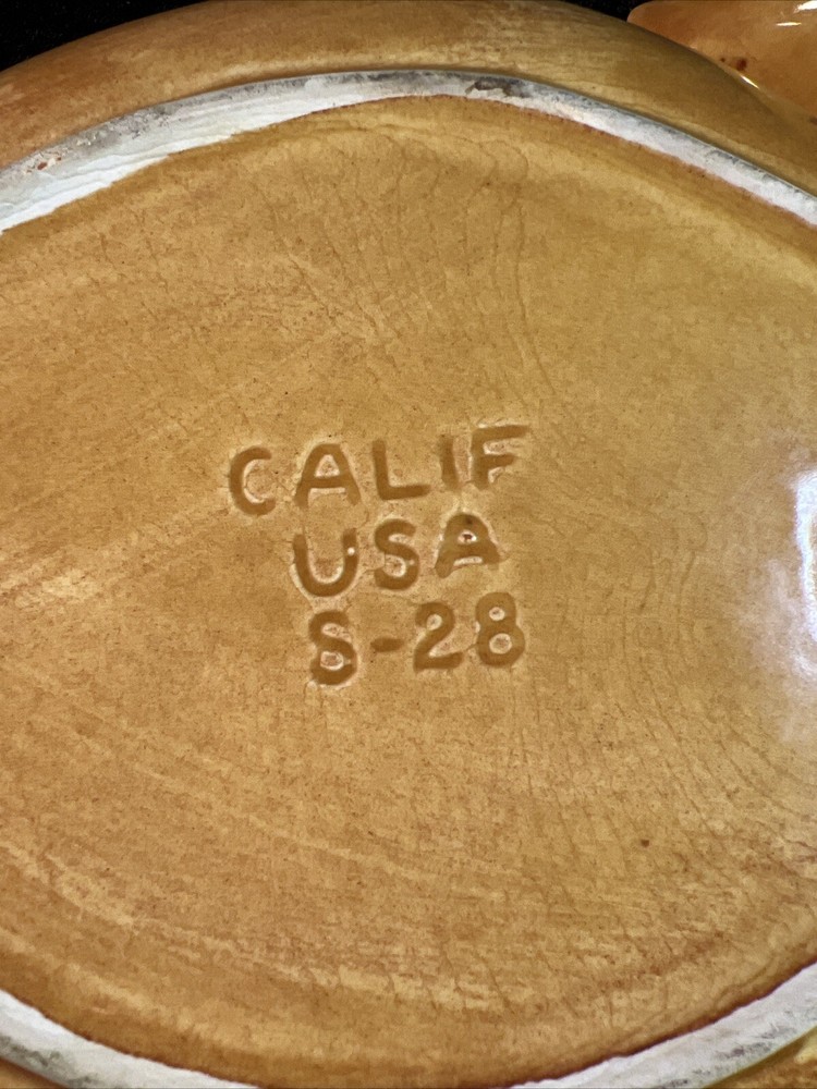 Perfect for a fall table. Retro, vintage vibe but functional as well. No chips or crazing. Hairline crack on top surface-doesn’t go through to back side (see last photo).