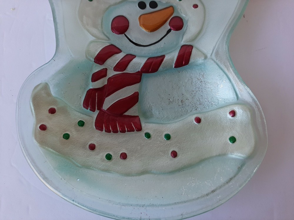 Large Snowman Chip and Dip Serving Treats Platter Christmas Holiday.