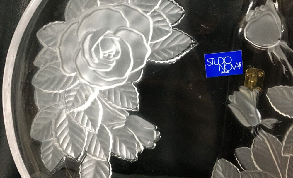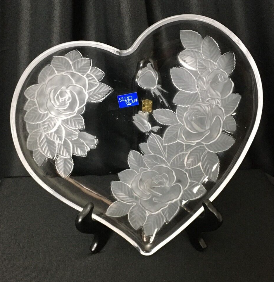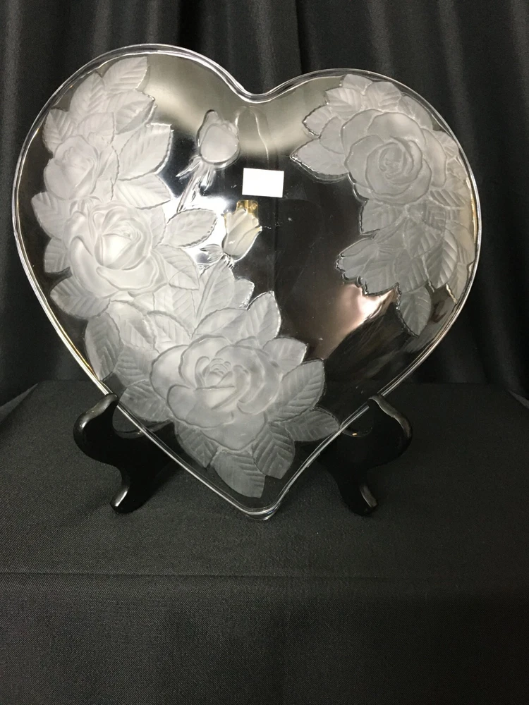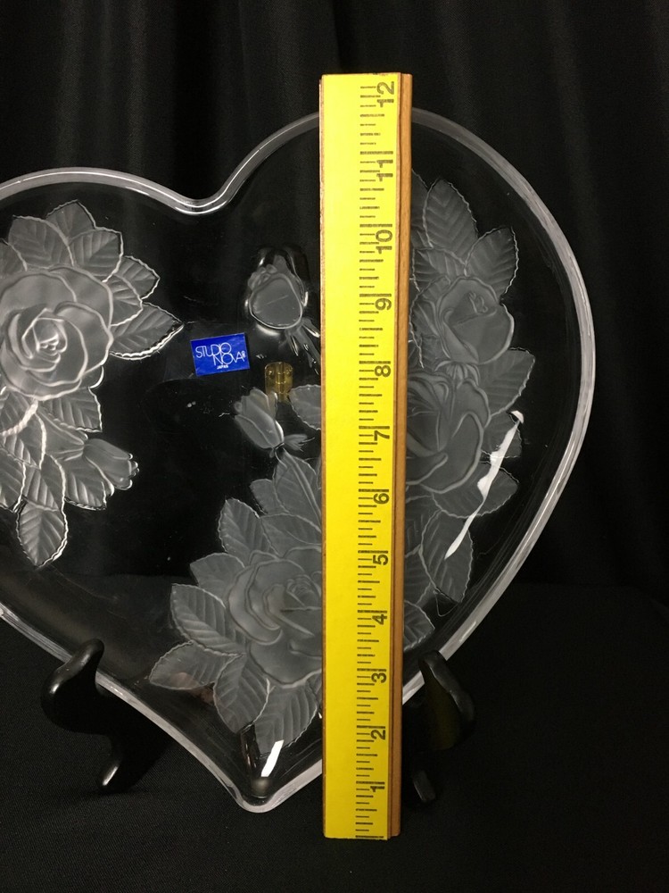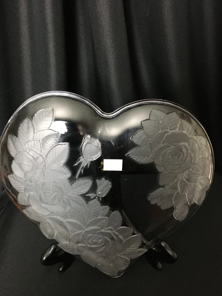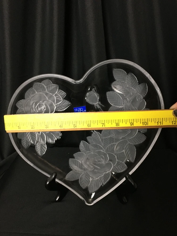 Add a touch of elegance to your home decor with this stunning large studio Nova Crystal Heart with Flowers. The heart-shaped crystal is adorned with beautiful flowers, making it a perfect addition to any room. The clear crystal and art glass production style give it a unique and vintage look that is sure to impress. This item is perfect for those who love to collect decorative cookware, dinnerware, and serveware. It is made of high-quality crystal and has one compartment, making it perfect for storing small items or serving your favorite beverages. The Studio Nova brand is known for its exceptional quality, and this piece is no exception. Add a touch of romance and elegance to your home with this beautiful crystal heart.