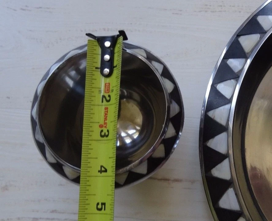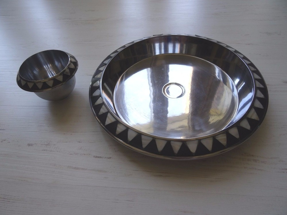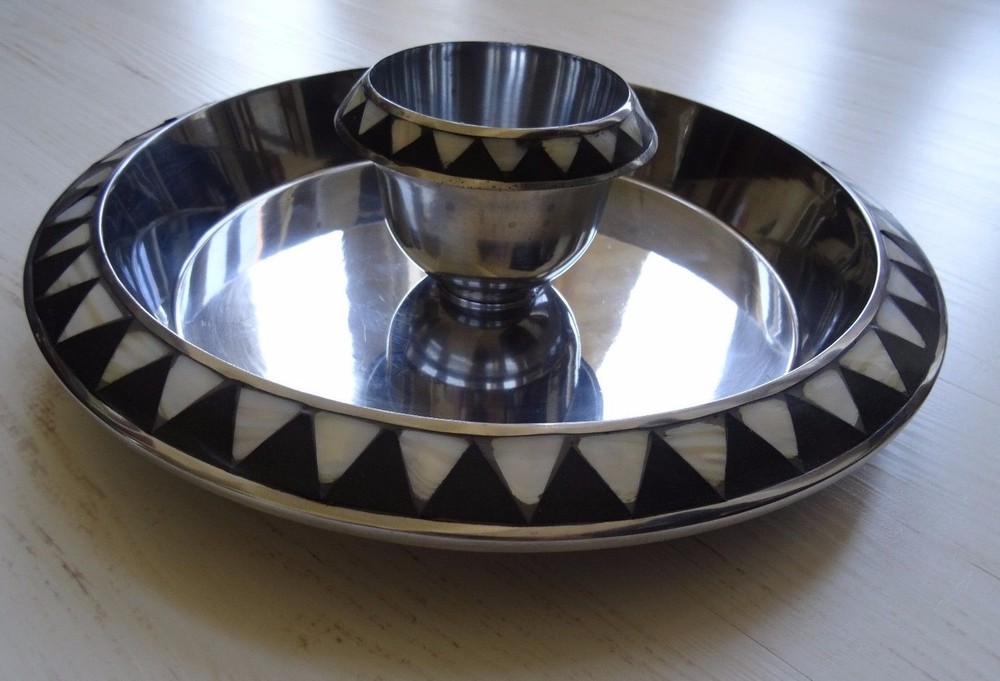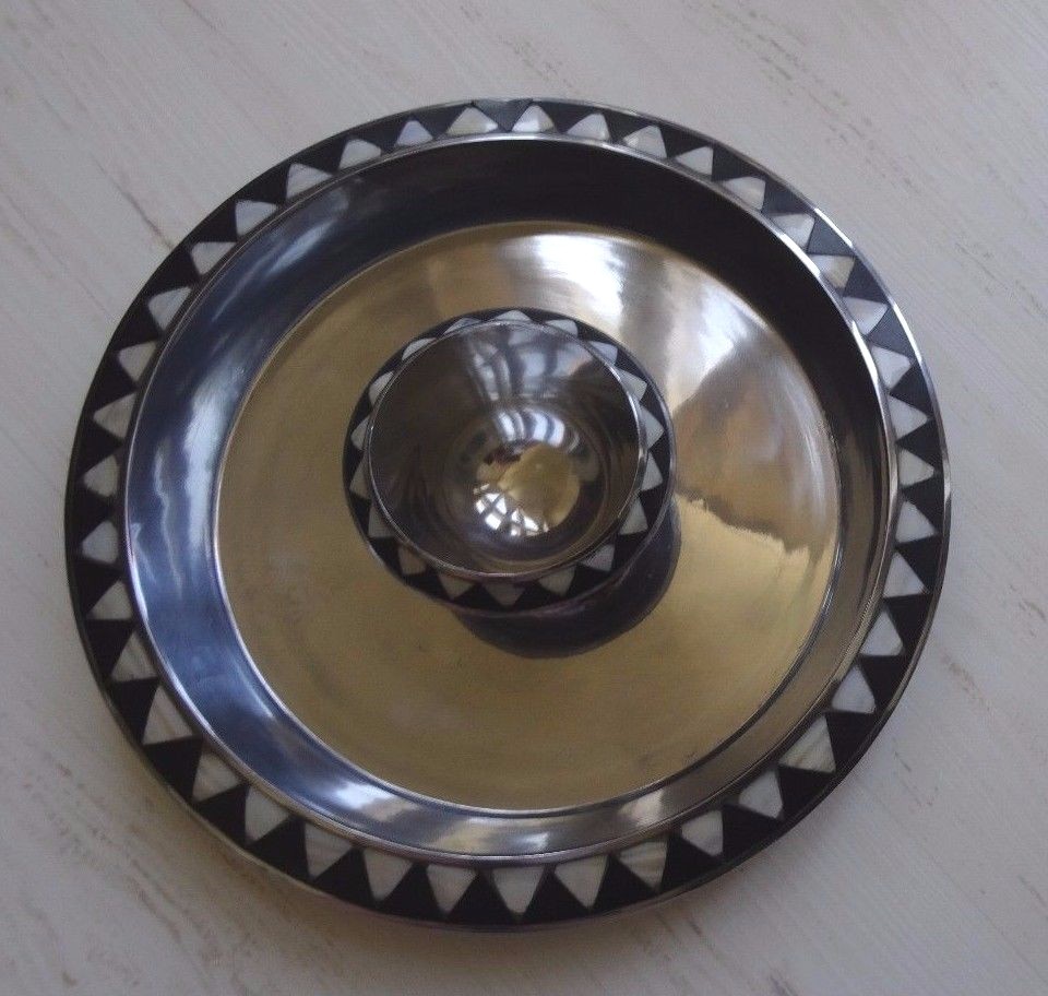 Towle Serving Platter with dip bowl Silversmith Made in India Mother of Pearl style inlay Approximately 13" diameter...