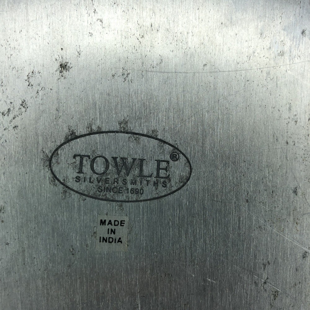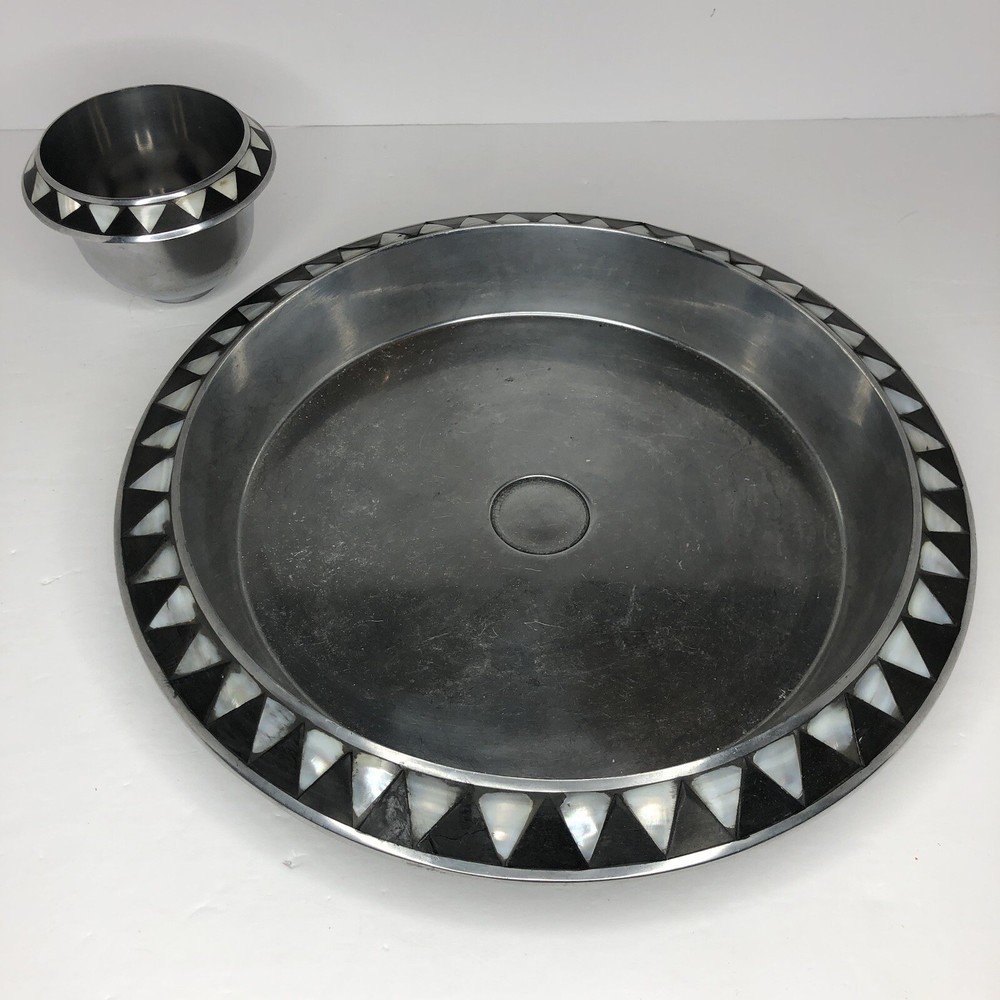 Large Towle Silver Metal Platter Dip Tray Mother of Pearl Inlay 13". Great shape! Perfect for the Holidays...