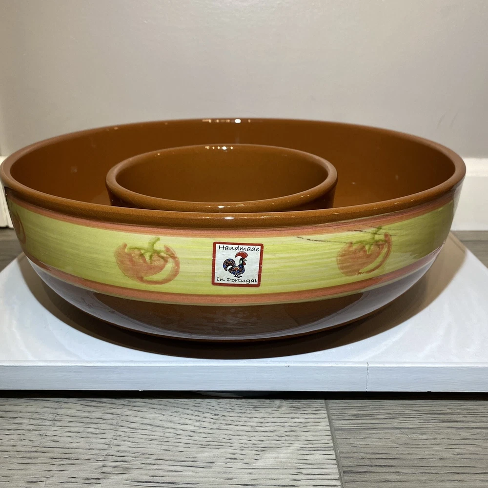 Val Do Sol Portugal Pottery Large Serving Bowl Chips Dip Tomato Glazed Red Clay. In new, unused condition with original sticker. Heavy, weighs close to 7 pounds. Very small paint scratch as highlighted in one of the attached photos. No chips or cracks. We pack all of our fragile items with extra care prior to shipping. Please see all photos for closer details as they are part of the item description. *We do our best to accurately list each item with detailed descriptions and photographs, including any imperfections. We recommend using the zoom feature on all photos for a better idea of the condition of each item. If you would like additional photos or information, please let us know prior to purchasing. Thanks so much!