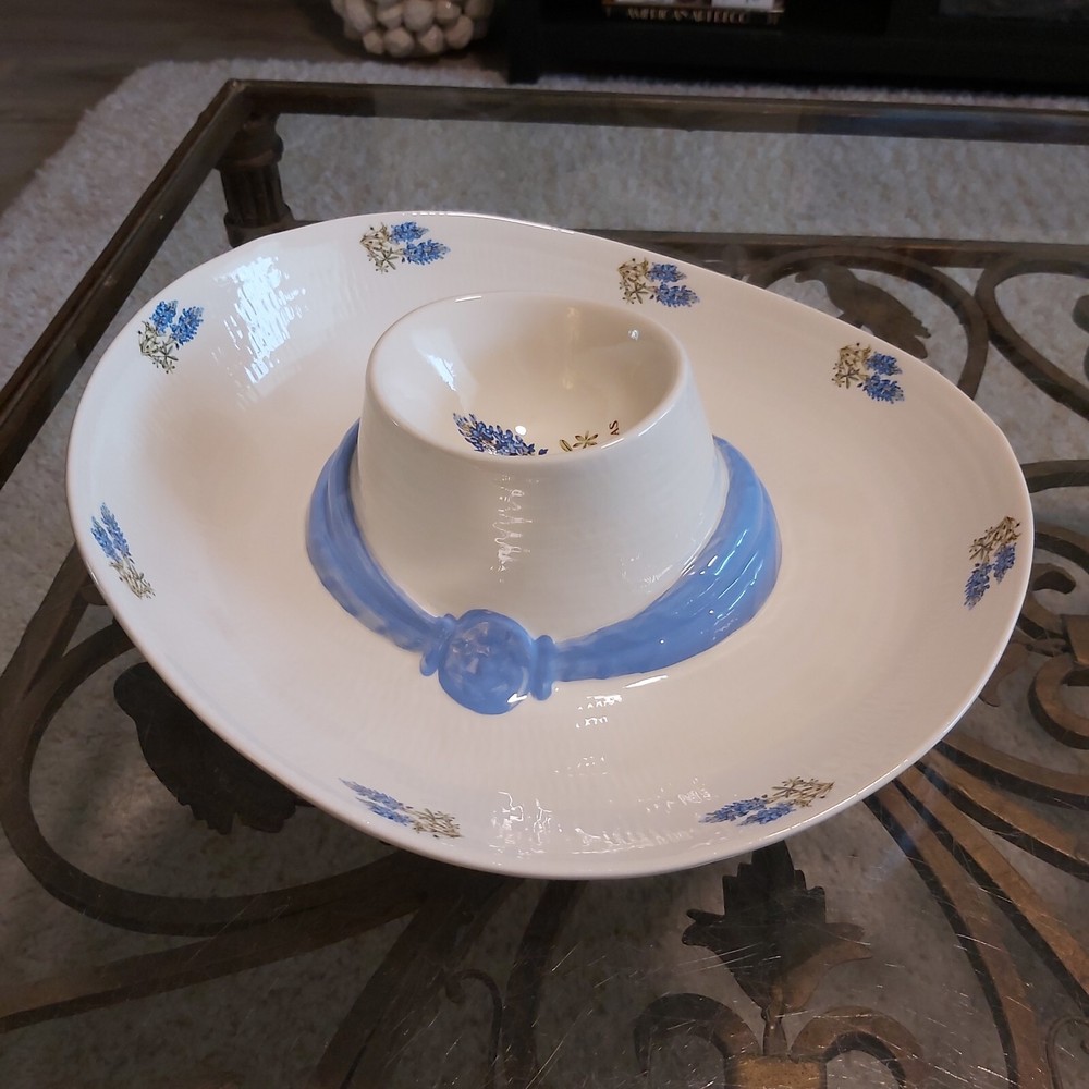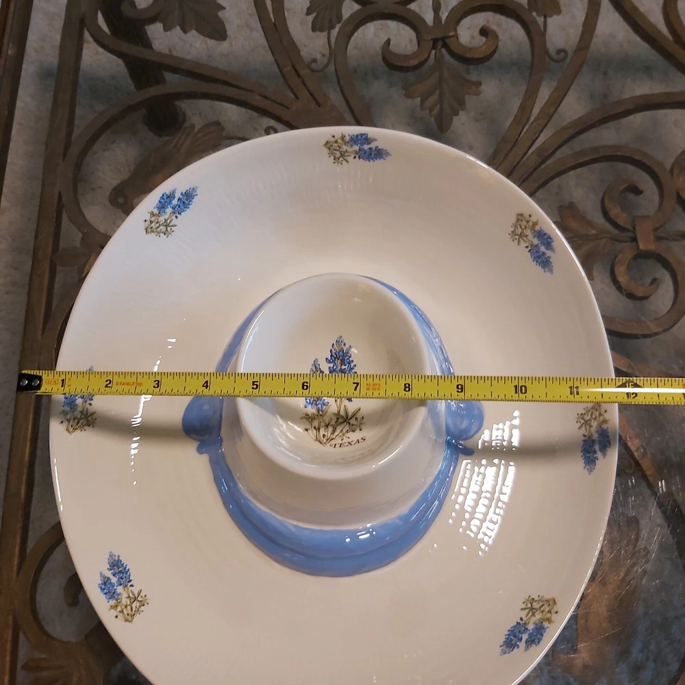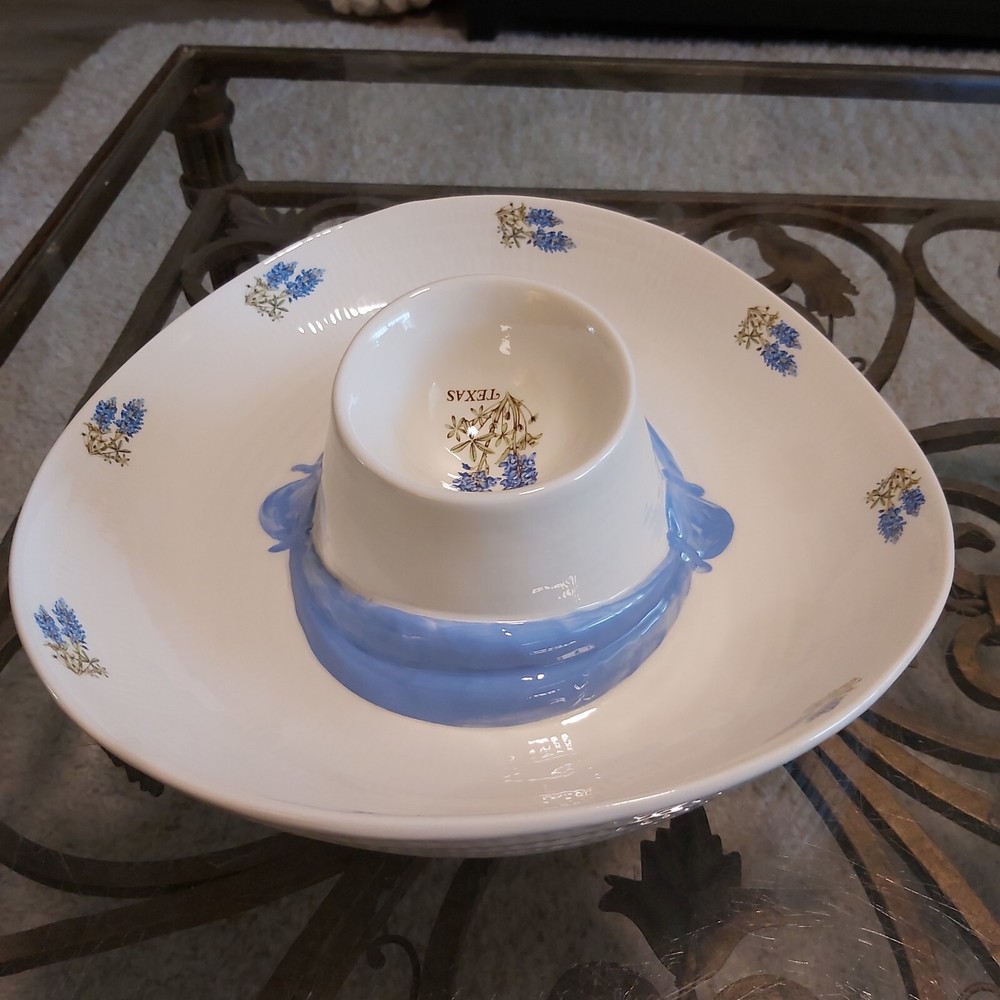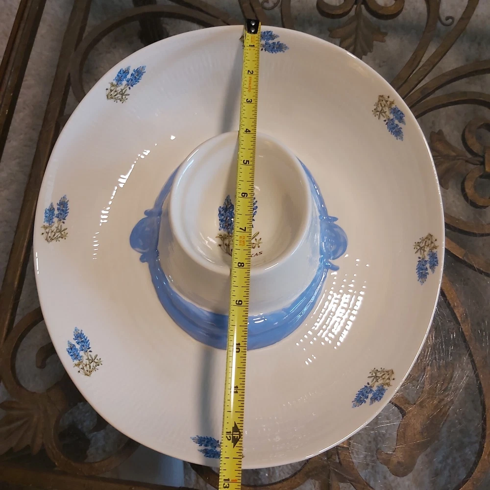 Really special vintage chip and dip bowl featuring the bluebonnets of Texas. In lovely pre-owned condition, with no chips or cracks. Vibrant colors. Super quick and careful shipping! L4...