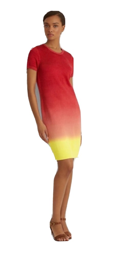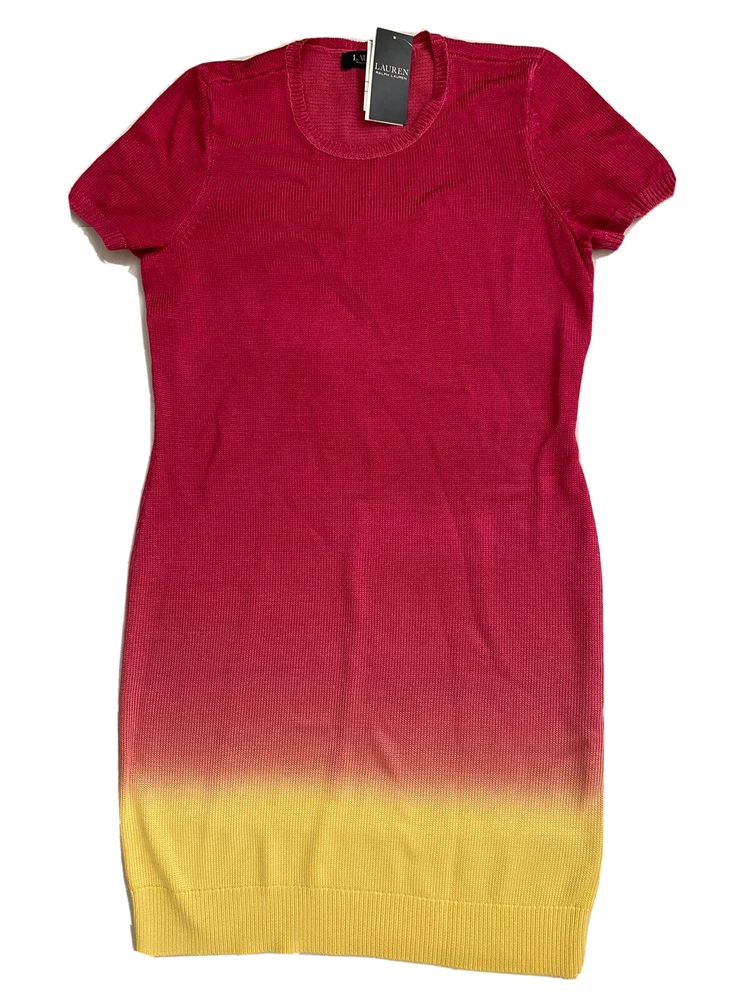 Lauren Ralph Lauren Women Dip-Dyed Short Sleeve Jersey stretch Dress Size L. Measurements: armpit to armpit 20 in without stretch. Shoulder to shoulder 15 in, dress length 38 in approximately. Shipping with USPS