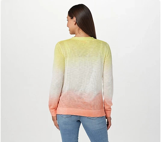 Fabrication: sweater knit Features: button-front closure, dip-dyed print, long sleeves, sleeve cuff detail, finished hemline Fit: semi-fitted; follows the lines of the body with added wearing ease Length: missy length 23-1/2" to 25-5/8"; plus length 26" to 27-3/4" Content: 93% acrylic/7% linen Care: hand wash, dry flat Imported WE WILL SHIP TO US ONLY - NO EXCEPTIONS!! WE WILL BE MORE THAN HAPPY TO OFFER COMBINED SHIPPING DISCOUNTS IF ITEM QUALIFIES FOR COMBINED SHIPPING DISCOUNT!! COMBINED SHIPPING COSTS ARE CALCULATED WITH THE FULL AMOUNT OF THE HIGHEST SHIPPING COST ITEM FIRST - AND THEN ADDITIONAL SHIPPING DISCOUNTS ARE ADDED!!! THIS ITEM IS ELIGIBLE FOR AN ADDITIONAL $4.00 COMBINED SHIPPING FEE PER EACH ADDITIONAL ITEM PURCHASED WITHIN 5 AUCTION DAYS AND PAID FOR WITH ONE INVOICE!!!! PLEASE WAIT FOR A COMBINED SHIPPING INVOICE BEFORE PAYING!!!! PLEASE LET US KNOW WHEN YOU ARE FINISHED SHOPPING SO WE MAY SEND YOU A REVISED INVOICE WITH COMBINED SHIPPING RATES!! IF IN DOUBT PLEASE FEEL FREE TO CONTACT US ANYTIME!!! PLEASE IF YOU DO NOT AGREE WITH THESE TERMS DO NOT BID, AS THESE TERMS ARE NON-NEGOTIABLE!!! WE ONLY REFUND IF THE ITEM HAS BEEN GROSSLY MISREPRESENTED!! WE DO NOT REFUND OR EXCHANGE ON LINGERIE ITEMS!! WE DO NOT REFUND OR EXCHANGE IF ITEM DOES NOT FIT OR IS NOT LIKED!!! WE ARE A SMOKE FREE AND PET FREE ENVIRONMENT!! THANK YOU VERY MUCH!! GOD BLESS YOU ALL!!! Listing and template services provided by inkFrog