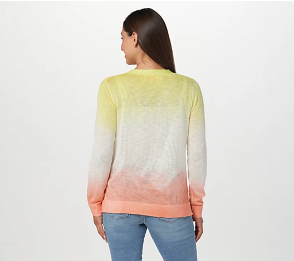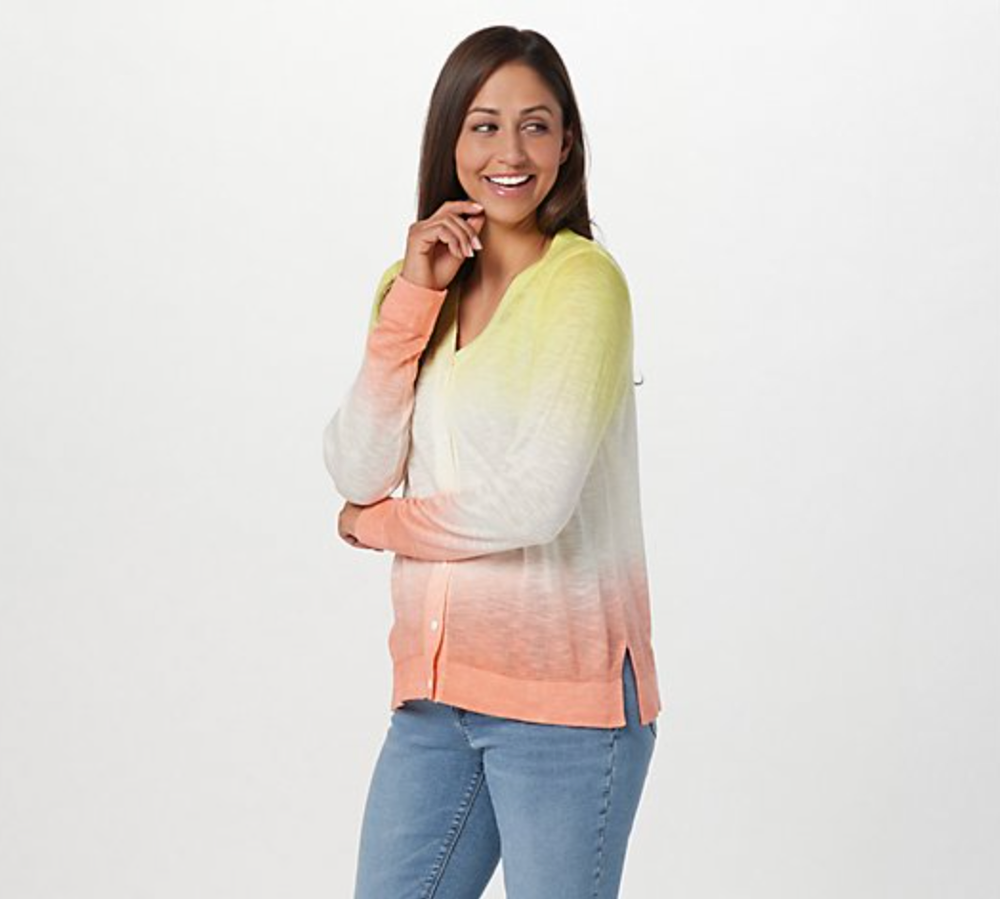 Dip into this this dip-dyed cardi that's just as refreshing (and pretty) as a snow cone on a hot summer day. From Laurie Felt Los Angeles. Fabrication: sweater knit Features: button-front closure, dip-dyed print, long sleeves, sleeve cuff detail, finished hemline Fit: semi-fitted; follows the lines of the body with added wearing ease Length: missy length 23-1/2" to 25-5/8" Content: 93% acrylic/7% linen Care: hand wash, dry flat Imported All Products are Guaranteed Fresh and 100% Authentic! Ships same or next day! Shipping: Our goal is to ship your order as fast as possible. Orders that have received payment before 2pm PST Monday-Saturday will be shipped the same day. Excluding US holidays. We'd be happy to discount shipping on multiple items. Please ask for a new invoice BEFORE PAYING. Returns: If you are not happy with your purchase, we will gladly accept returns within 30 days (Except for intimates and swimwear). Item(s) must be returned in original, unused condition with original tags/packaging. You will receive a full refund for the cost of the merchandise less all shipping costs (if applicable). We appreciate your business! We take our reputation seriously, so we understand the value of trust. If you are unsatisfied with your order, please contact us and we will work with you to resolve it to your satisfaction.