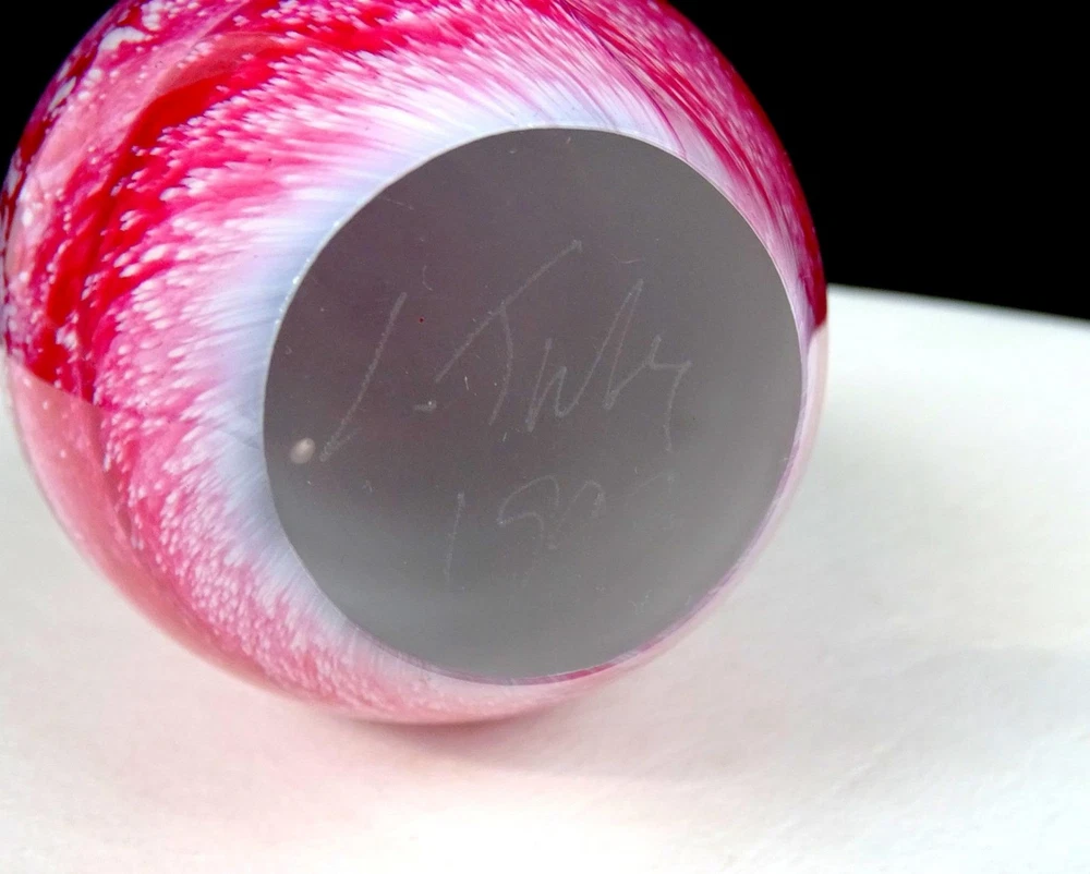 Lawrence Tuber Art Glass Signed Swirl Mottled Egg Shaped 4 1/2" Paperweight 1993 Lawrence Tuber Art Glass Signed Swirl Mottled Egg Shaped 4 1/2" Paperweight 1993 Click images to enlarge Description Lawrence Tuber Art Glass Signed Pink Swirl Mottled Egg Shaped 4 1/2" Paperweight 1993 This is in Excellent Condition with No Chips No Cracks No Fleabites. Very nice Lawrence Tuber Studio Art Glass Paperweight. This features a pink and white mottled pattern cased in clear glass. It has a carved swirl design in and egg shape. The glass is clear and bright with the artist's signature and date on the base. This is a quality paperweight with some weight to it. This measures 4 1/2" High x 2 1/2" Wide at the Widest Point. I have provided a lot of pictures to best describe the condition of this Paperweight. (The pictures are of the exact piece you will receive). Photography Props & photo stands are not included. This will have a VERY LOW BUY IT NOW PRICE OF JUST $164.95. Shipping should run around $15 TO $18 dollars depending on where your zip code is located. We are more than Happy to accommodate any shipping needs. Please email for International Shipping Rates. IMPORTANT NOTE FOR INTERNATIONAL BUYERS: Different countries may or may not charge an import tax on the value of the item purchased. Any import tax that could be charged is the buyer's responsibility. We are based in the US and are not well versed in each country's import tax regulations. In most cases all orders are shipped in one to three days after payment is received, in rare cases with large orders please allow more time. This is a Quality Piece and will have a shipping weight of about 4 Lbs. We can easily combine shipping with other orders. If you have any questions feel free to email anytime, thanks. CHECK OUT AND SHIPPING Please pay for purchases promptly within 3 days. We Ship five days a week Monday through Friday on all paid in full orders after Pay Pal releases funds. An E-Check can take up to 5 days to clear Pay Pal before we able to ship. If there are any questions, feel free to email anytime. OTHER PAYMENT OPTIONS We accept Pay Pal. For other payment arrangements, message or email us. RETURN POLICY If for some reason your order is not as you expected it to be. Just let us know. Maybe something was accidentally over looked. We will do what is right and fair to make sure you as a buyer are taken care of. We want every buyer to have a positive experience with us. We will give a full refund upon return of the item. Usually return shipping is not paid. If you need to get in touch use the eBay Email from your order. We monitor emails regularly and will reply to you as fast as possible. Images sell! Get Supersized Images & Free Image Hosting Create your brand with Auctiva's Customizable Templates. Attention Sellers - Get Templates Image Hosting, Scheduling at Auctiva.com.