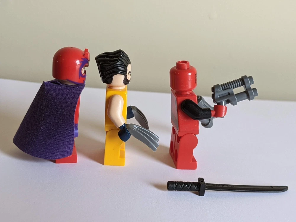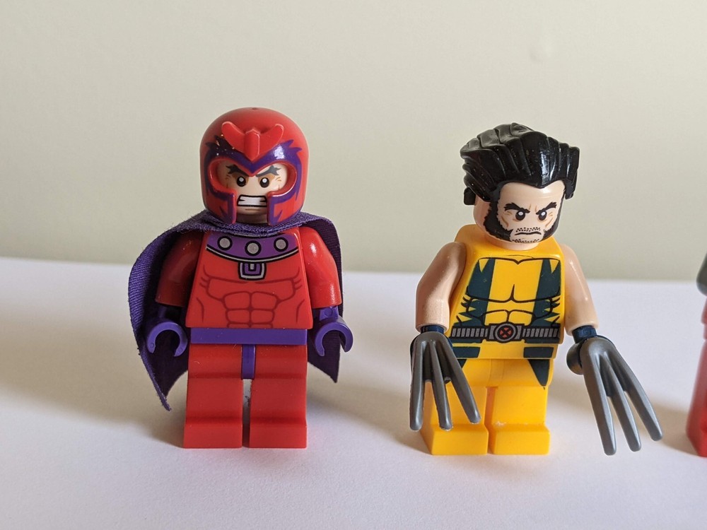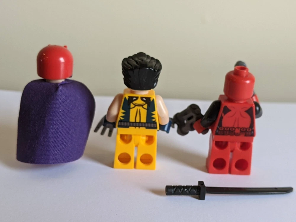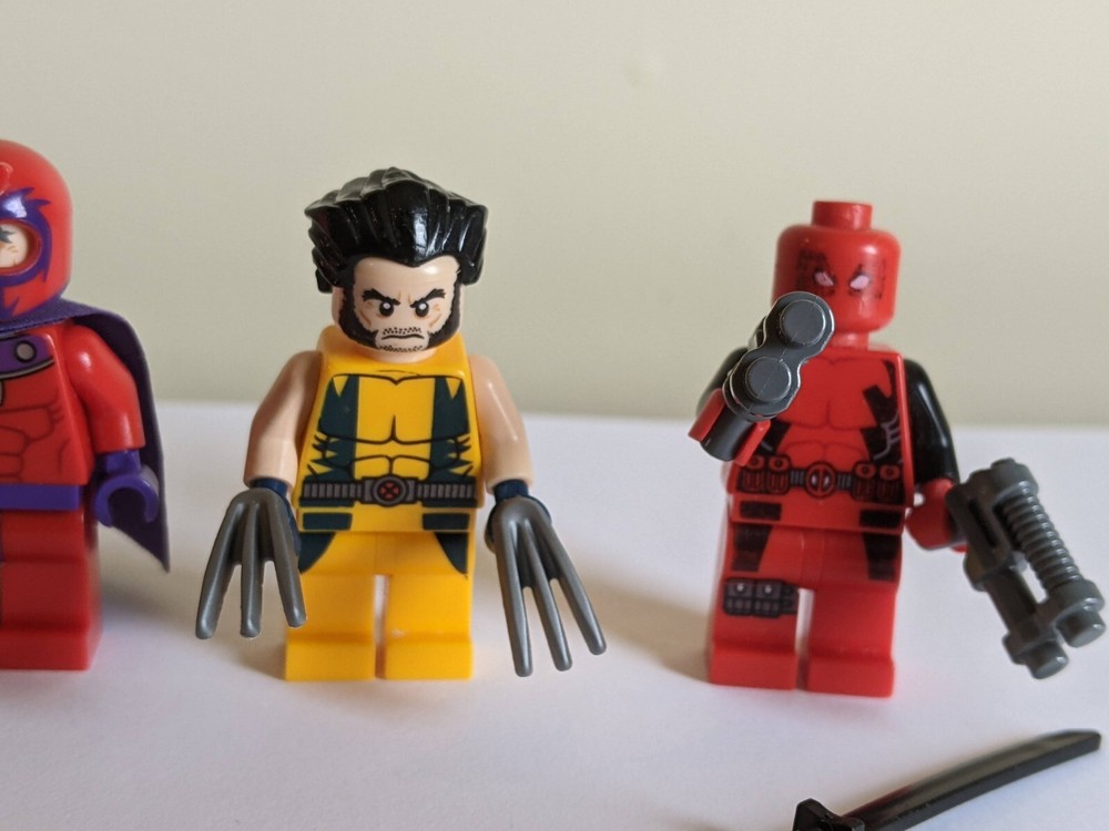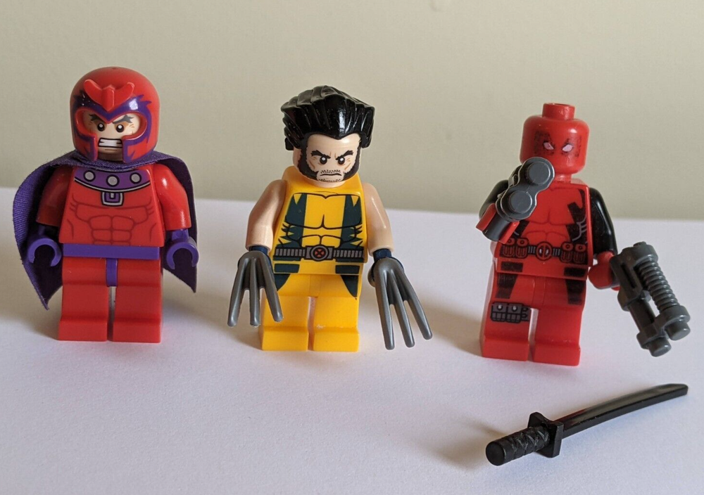 Lego Deadpool Wolverine & Magneto Minifigures ONLY From 6866 Faded Head See Pics Please see photos for details. Deadpool has a faded head as pictured. Missing a sword and sword holder. Includes items seen in photos. No other items or accessories. From a smoke free home. Have a great day!