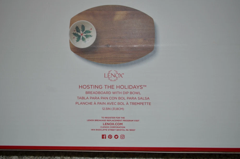 Lenox Breadboard with Dip Bowl From Hosting the Holidays Collection Bread Board Measures 12.5” long Holly and Berries Bone China Bowl New Factory Sealed Unique See photos. Photos are of actual item you will receive. ~~~~~~~~~~~~~~~~~~~~~~~~~~~~~~ Fine Print: Photos considered part of the item’s description. All items come from a smoke free, pet friendly home. All measurements are taken lying on a flat, hard surface. If you have any questions, please send me a note. Thanks for visiting Donna’s Discounts