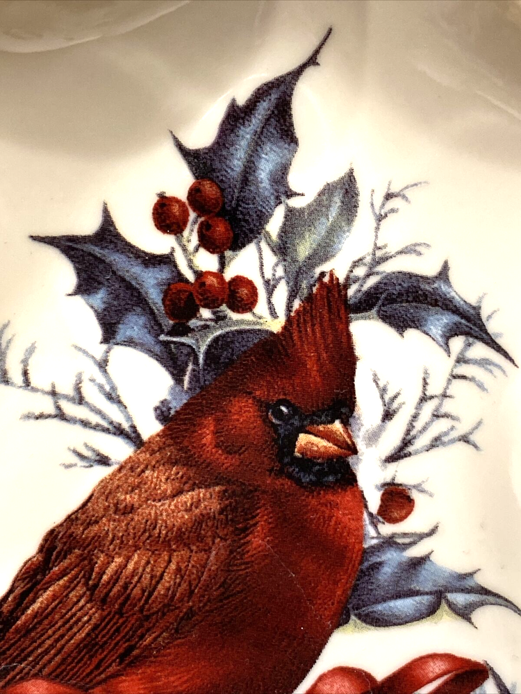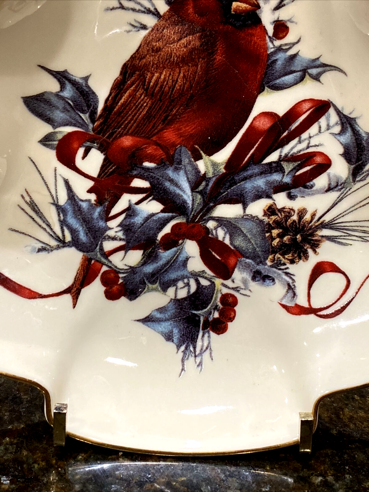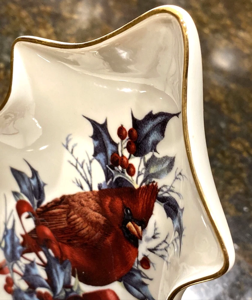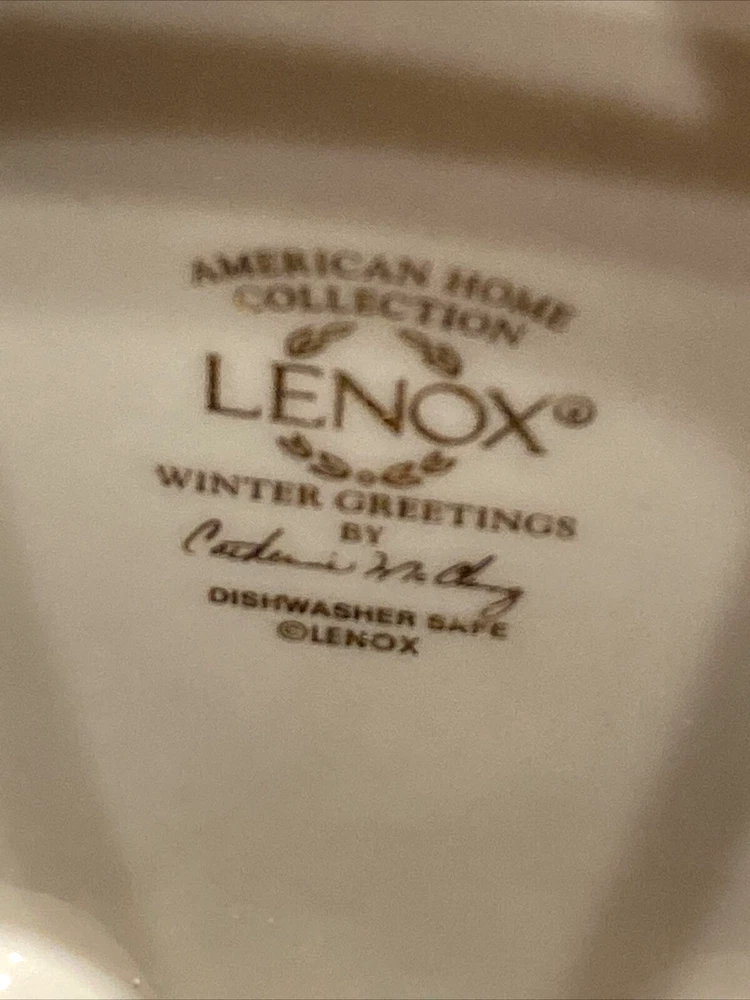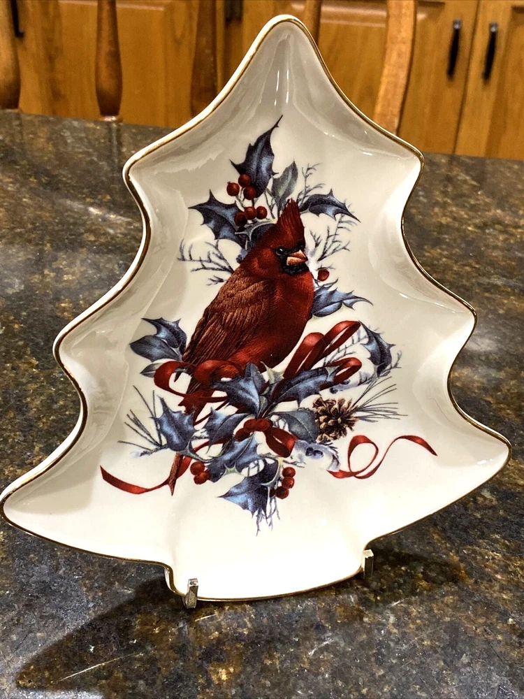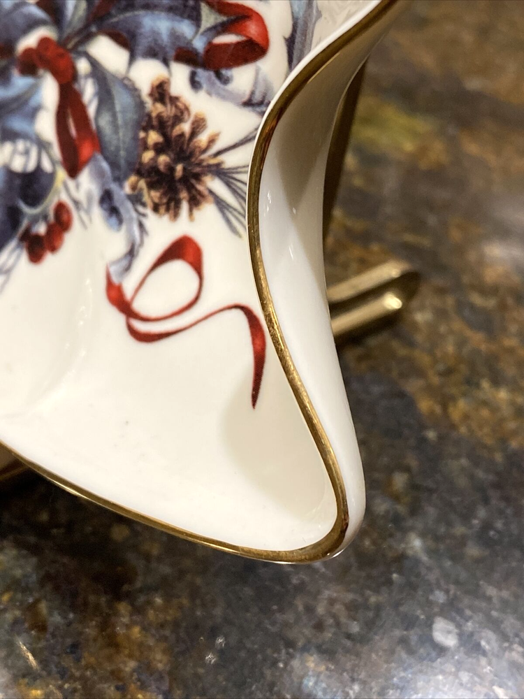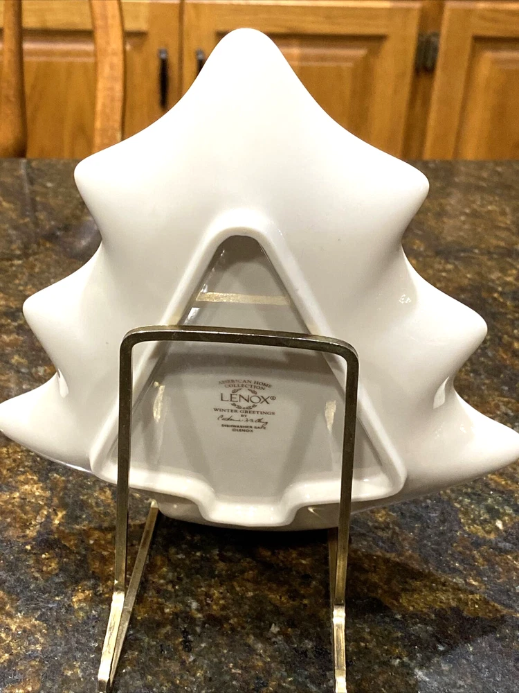 Lenox Winter Greetings Tree Shaped Candy or Nut Dish 7.5" Dish measures approximately 7.5" x 7" x 1.25" No chips or cracks - no visible wear to the gold trim Please see pictures