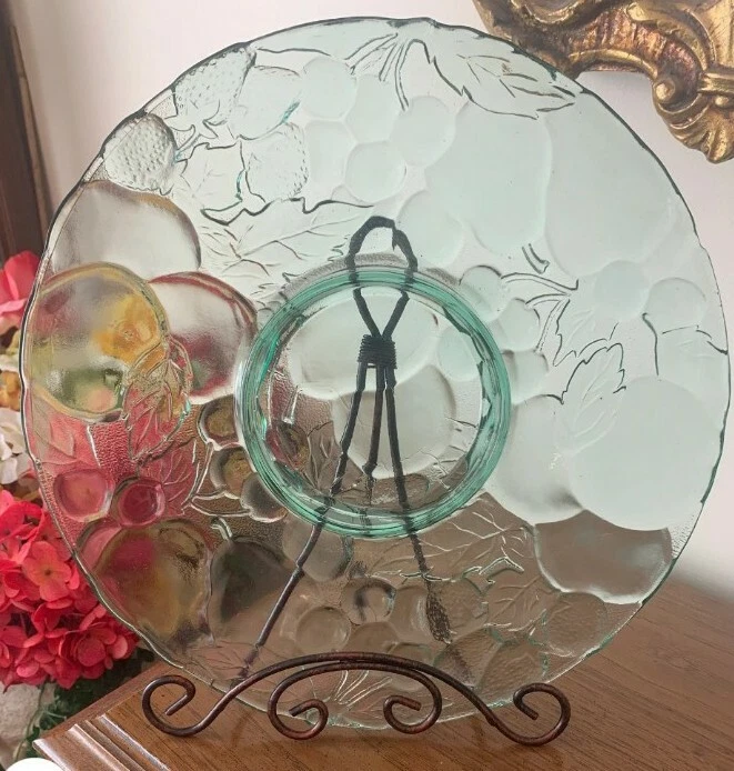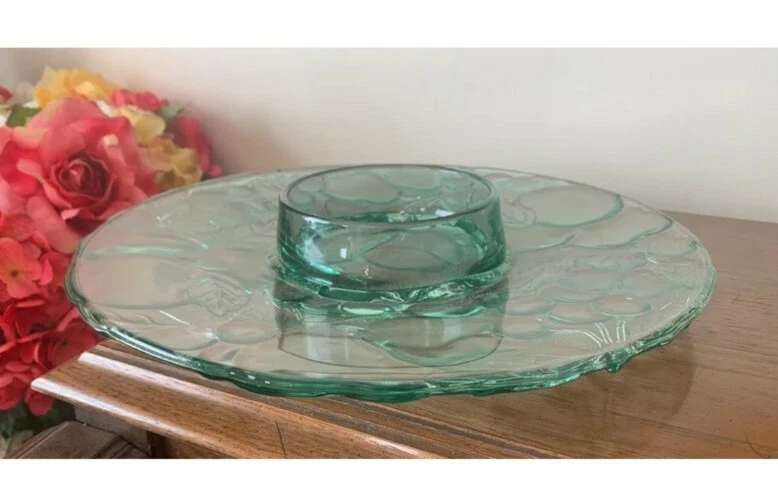 Libbey Green Orchard Fruit 13" Chip And Dip / Relish Dish Party Tray. Beautiful!. Excellent Condition. Shipped with UPS Mail. Thank you and God Bless 🙏
