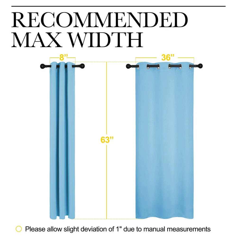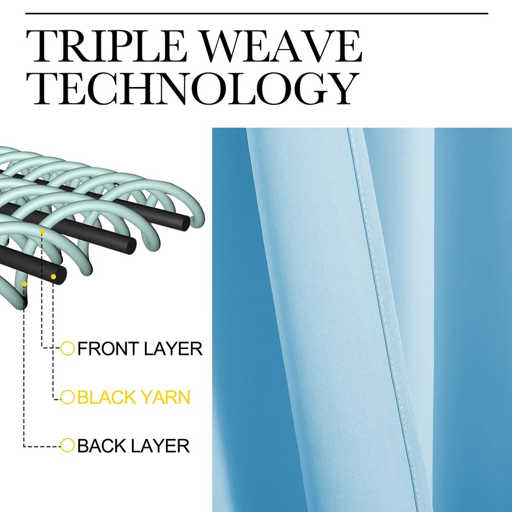 READY MADE: Set includes 2 BLACKOUT CURTAINS PANELS of 42" wide x 63" length with 6 grommets top each. Quality fabric without liner feels soft and heavy. SERVE WELL: Curtains impede 85%-99% light and UV rays(Dark color curtains work well). Noise-reducing, better TV viewing thanks to the innovative triple weave technology. ENERGY SMART: Triple weave blackout fabric balances room temperature by insulating against summer heat and winter chill. Protect your furniture, floors, and artwork from the ravages of the sun, the drapes will pay for themselves off over time. GOOD TO GO: Thread trimmed and wrinkle-free, ring (1.6-inch inner diameter) fits easily with standard curtain rods. All sets for you to put them up right away. EASY TO MAINTAIN: blackout curtains are made to last. Machine washable in cold water, tumble dry. Quick ironing or steam clean when needed. Visiting the store, find out your favorite curtains.