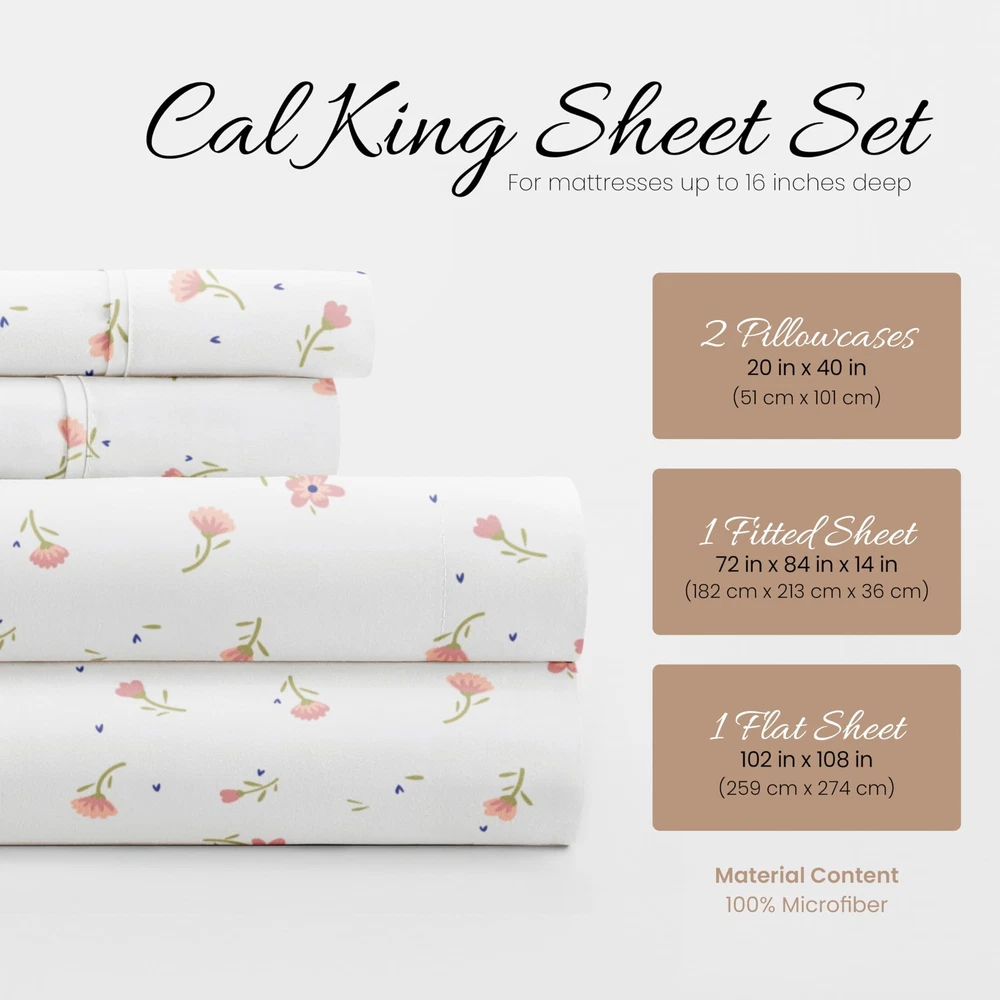 Linen Market 4 Piece California King Bedding Sheet Set (Pink Floral) - Sleep Better Than Ever with These Ultra-Soft & Cooling Bed Sheets for Your Cal King Size Bed - Deep Pocket Fits 16" Mattress ✓ Free 60 Day Returns ✓ Free Express Shipping Description: Features: 100% Microfiber Imported LUXURY AND COMFORT-You'll be amazed at how silky soft, and comfortable these luxurious bed sheets are! iEnjoy Home luxury sheet sets are designer sheets at an unbelievable price. The perfect fit for any room in your house - bedroom, guest room, kids room, dorm room, RV, vacation home. Great gift idea for men and women, Moms and Dads, Valentine's - Mother's - Father's Day, Birthday, and Christmas. Made of the finest double-brushed microfiber yarns creating a new standard in softness and breathability More durable than cotton, completely wrinkle-free and perfect for all seasons TREMENDOUS SELECTION - Colors include Aqua, Black, Burgundy, Chocolate, Cream, Gold, Gray, Ivory, Light Gray, Navy, Purple, Sage, Taupe, and White. Patterns include Arrow, Blossoms, Burst of Vines, Coarse Paisley, Houndstooth, Honeycomb, Make A Wish, Mercedes, Polkadot, Puffed Chevron, Quatrefoil, Ribbon, Scallops, Soft Floral, Stippled, Thatch, Vines, and Wheatfield. Product Details: Size: California King Material: Microfiber Color: Floral Pink Pattern: Patterned Brand: Linen Market Size: California King Material: Microfiber Color: Floral Pink Pattern: Patterned Brand: Linen Market Number of Pieces: 4 Special Feature: Wrinkle Resistant Style: Modern Included Components: 1 Flat Sheet, 1 Fitted Sheet, 2 Pillow Cases Closure Type: No Closure Thread Count: 20000 Age Range (Description): Adult Product Care Instructions: Machine Wash Theme: Floral Cartoon Character: Floral Seasons: All Item dimensions L x W x H: 102 x 108 x 1 inches Pillowcase Quantity: 2 Unit Count: 1.0 Count Sham Quantity: 2 Item Display Dimensions: 102 x 108 x 1 inches Global Trade Identification Number: 90 Manufacturer: ienjoy Home UPC: 816651028290 Product Dimensions: 102 x 108 x 1 inches Item Weight: 3.5 pounds Department: unisex-adult Country of Origin: China Item model number: LM-4PC-1-1 Fabric Type: 100% Microfiber Finish types: Double Brushed Microfiber Perfume: Pink - Soft Floral Assembly required: No Batteries required: No Import: Imported