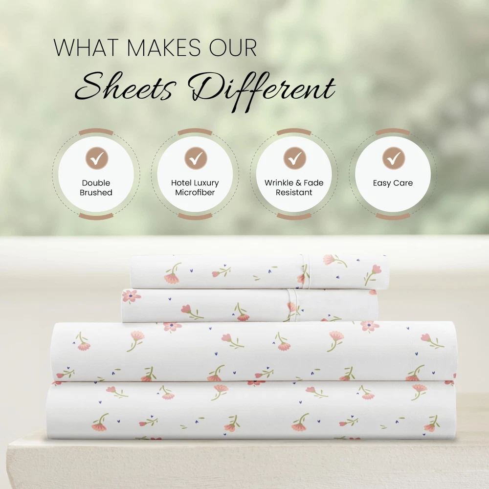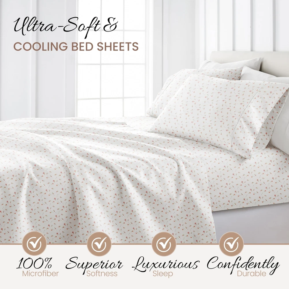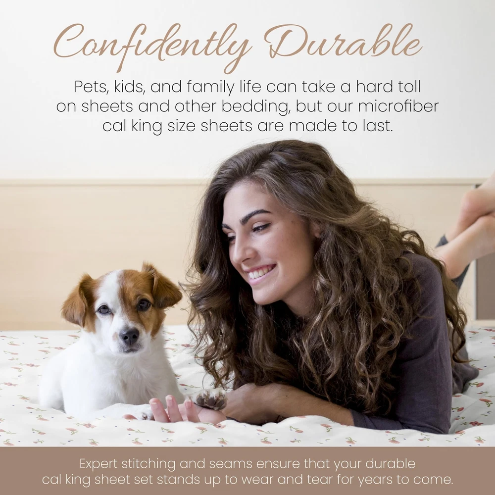 Linen Market 4 Piece California King Bedding Sheet Set (Pink Floral) - Sleep Better Than Ever with These Ultra-Soft & Cooling Bed Sheets for Your Cal King Size Bed - Deep Pocket Fits 16" Mattress Description Features: 100% Microfiber Imported LUXURY AND COMFORT-You'll be amazed at how silky soft, and comfortable these luxurious bed sheets are! iEnjoy Home luxury sheet sets are designer sheets at an unbelievable price. The perfect fit for any room in your house - bedroom, guest room, kids room, dorm room, RV, vacation home. Great gift idea for men and women, Moms and Dads, Valentine's - Mother's - Father's Day, Birthday, and Christmas. Made of the finest double-brushed microfiber yarns creating a new standard in softness and breathability More durable than cotton, completely wrinkle-free and perfect for all seasons TREMENDOUS SELECTION - Colors include Aqua, Black, Burgundy, Chocolate, Cream, Gold, Gray, Ivory, Light Gray, Navy, Purple, Sage, Taupe, and White. Patterns include Arrow, Blossoms, Burst of Vines, Coarse Paisley, Houndstooth, Honeycomb, Make A Wish, Mercedes, Polkadot, Puffed Chevron, Quatrefoil, Ribbon, Scallops, Soft Floral, Stippled, Thatch, Vines, and Wheatfield. Product Details: Size: California King Material: Microfiber Color: Soft Floral Pink Pattern: Patterned Brand: Linen Market Size: California King Material: Microfiber Color: Soft Floral Pink Pattern: Patterned Brand: Linen Market Number of Pieces: 4 Special Feature: Wrinkle Resistant Style: Modern Included Components: 1 Flat Sheet, 1 Fitted Sheet, 2 Pillow Cases Closure Type: No Closure Thread Count: 20000 Age Range (Description): Adult Product Care Instructions: Machine Wash Theme: Floral Cartoon Character: Floral Seasons: All Item dimensions L x W x H: 102 x 108 x 1 inches Item Weight: 1.61 Kilograms Pillowcase Quantity: 2 Unit Count: 1.0 Count Sham Quantity: 2 Item Display Dimensions: 102 x 108 x 1 inches Global Trade Identification Number: 90 Manufacturer: ienjoy Home UPC: 816651028290 Product Dimensions: 102 x 108 x 1 inches Item Weight: 3.54 pounds Department: unisex-adult Country of Origin: China Item model number: LM-4PC-1-1 Fabric Type: 100% Microfiber Finish types: Double Brushed Microfiber Perfume: Pink - Soft Floral Assembly required: No Batteries required: No Import: Imported Shipping Free fast shipping Return Policy All items qualify for returns within 30 days of receipt.