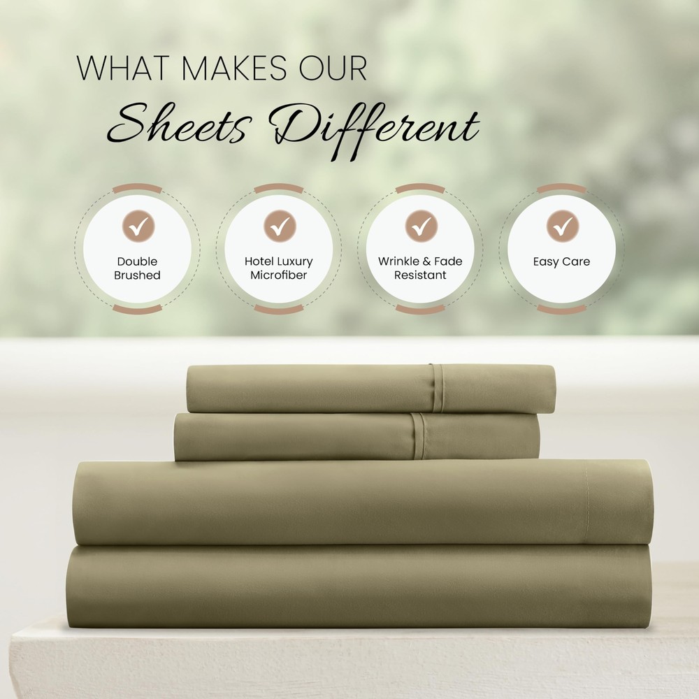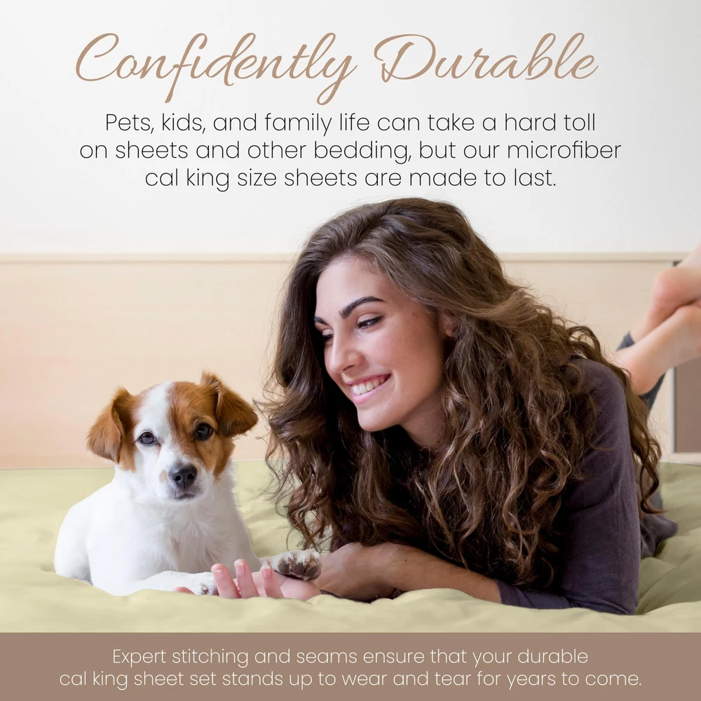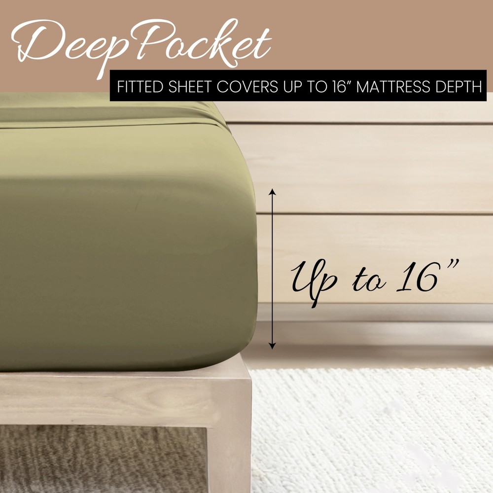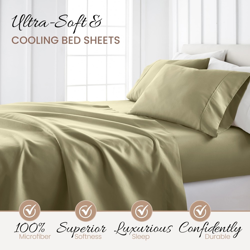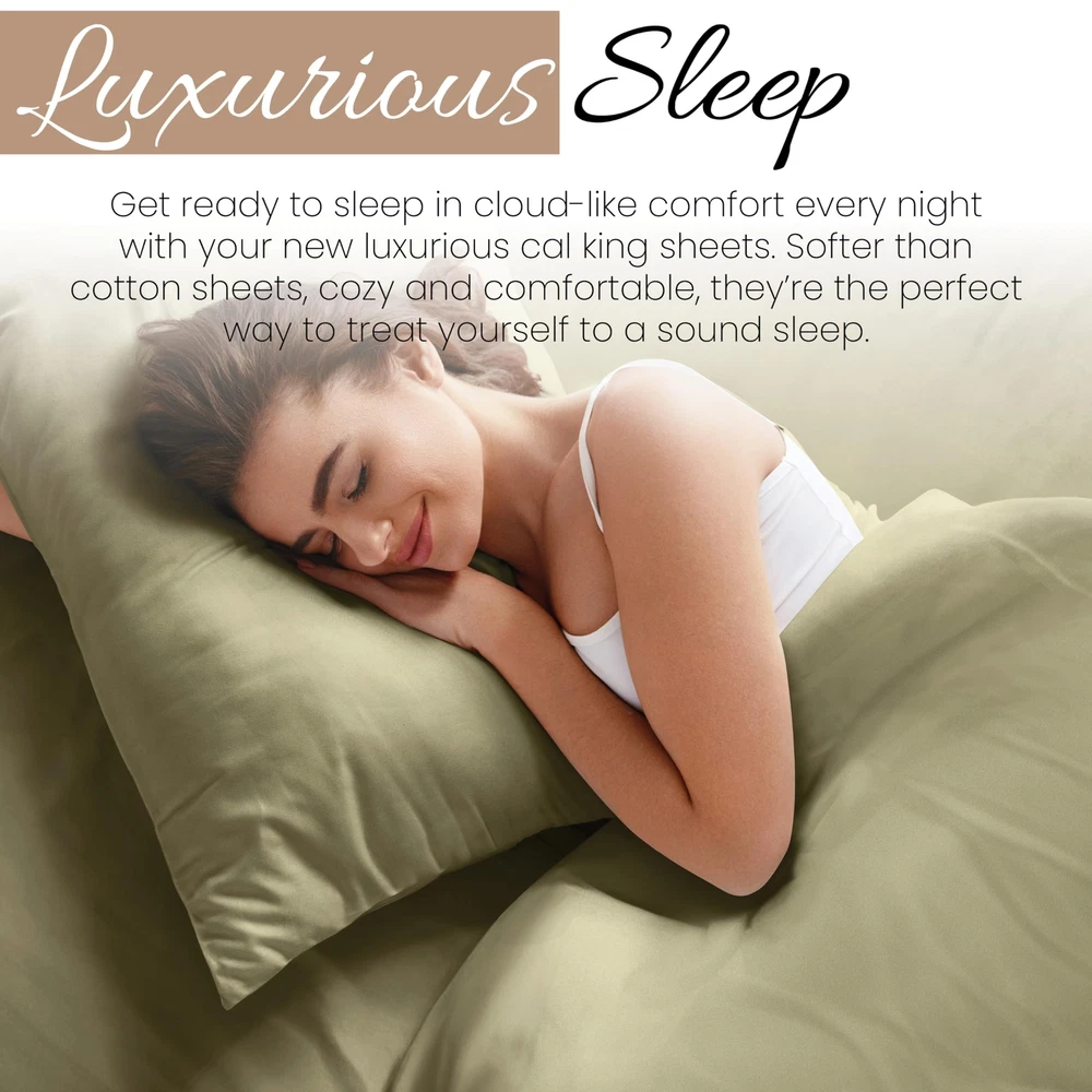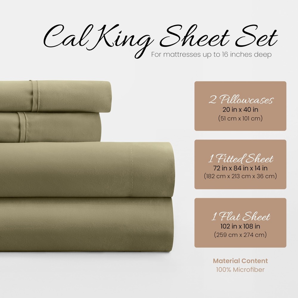 Linen Market Bed Sheets for California King Size Bed (Sage) - Sleep Better Than Ever with These Soft and Cooling California King Sheets - Deep Pocket Fits 16" Thick Beds - 4 Piece Cal King Sheet Set Description Features: ULTIMATE COMFORT: Get ready to sleep soundly every night with your new luxurious california king bed sheets. Soft, cozy and comfortable, they're the perfect way to treat yourself to the ultimate sleep experience. EASY SHEET CHANGES: Finding sheets that fit deep beds can be frustrating, but not with our deep pocket sheets. Our design allows for your new sheets to easily fit up to 16 deep beds. This set includes a fitted and flat sheet, and two pillowcases. LOW MAINTENANCE BEDDING: Our bed sheets are machine washable, making it easy to keep them looking and feeling their best, wash after wash. Say goodbye to the hassle of hand washing or sending your bedding to the cleaners. MADE TO LAST: Pets, kids, and family life can take a hard toll on sheets and other bedding, but our sheets are made to last. Expert stitching and seams ensure that your california king sheet set will stand up to wear and tear for years to come. NO MORE BORING BED SHEETS: Our sage bed sheets are sure to add a touch of elegance and brighten up any bedroom. With five sizes and nineteen color options to choose from, you're sure to find a match for your decor. Product Details: Size: California King Material: Microfiber Color: Sage Pattern: Solid Brand: Linen Market Product Care Instructions: Machine Wash Thread Count: 20000 Material Type: Microfiber Unit Count: 1.0 Count Item Display Dimensions: 11 x 16 x 4 x 10 inches Item Dimensions: 102 x 108 x 1 inches Item Weight: 3.1 Pounds Size: California King Closure Type: Zipper Additional Features: Machine Washable, Lightweight, Fade Resistant, Deep Pocket (16"), Wrinkle Resistant Theme: Solid Seasons: All Subject Character: Solid Pattern: Solid Style Name: Solid Color: Sage Global Trade Identification Number: 55 Manufacturer: ienjoy Home UPC: 816651025855 Pillowcase Quantity: 2 Brand Name: Linen Market Included Components: 1 Fitted Sheet, 1 Flat Sheet, 2 Pillow Cases Age Range Description: All Ages Shipping Free fast shipping Return Policy All items qualify for returns within 30 days of receipt.