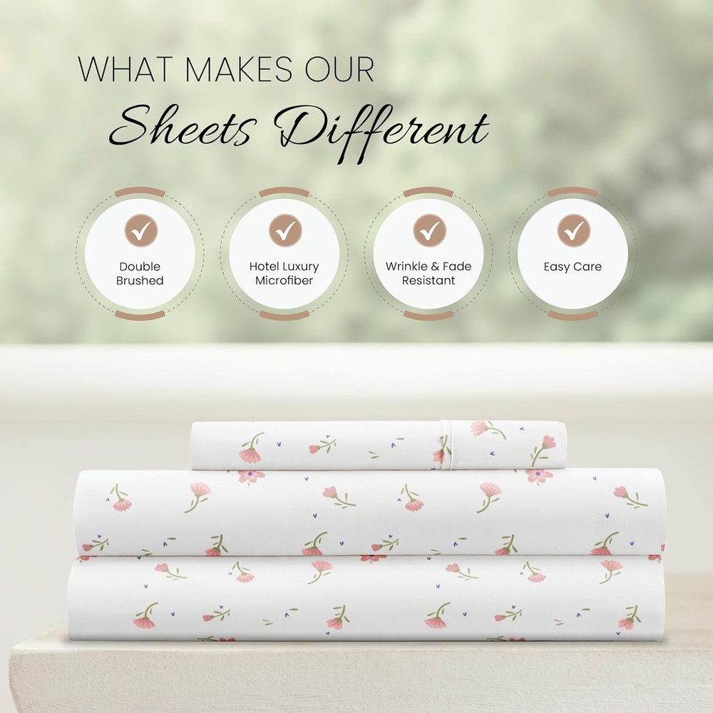 Absolutely love this floral pink microfiber sheet set! Super soft, lightweight, yet durable—perfect for year-round comfort. The wrinkle-resistant fabric makes it easy to care for, and the fitted sheet stays snug all night. The modern floral pattern adds a chic touch to any bedroom. Machine washing is a breeze, and they come out looking brand new every time. Great value for the quality; highly recommend!