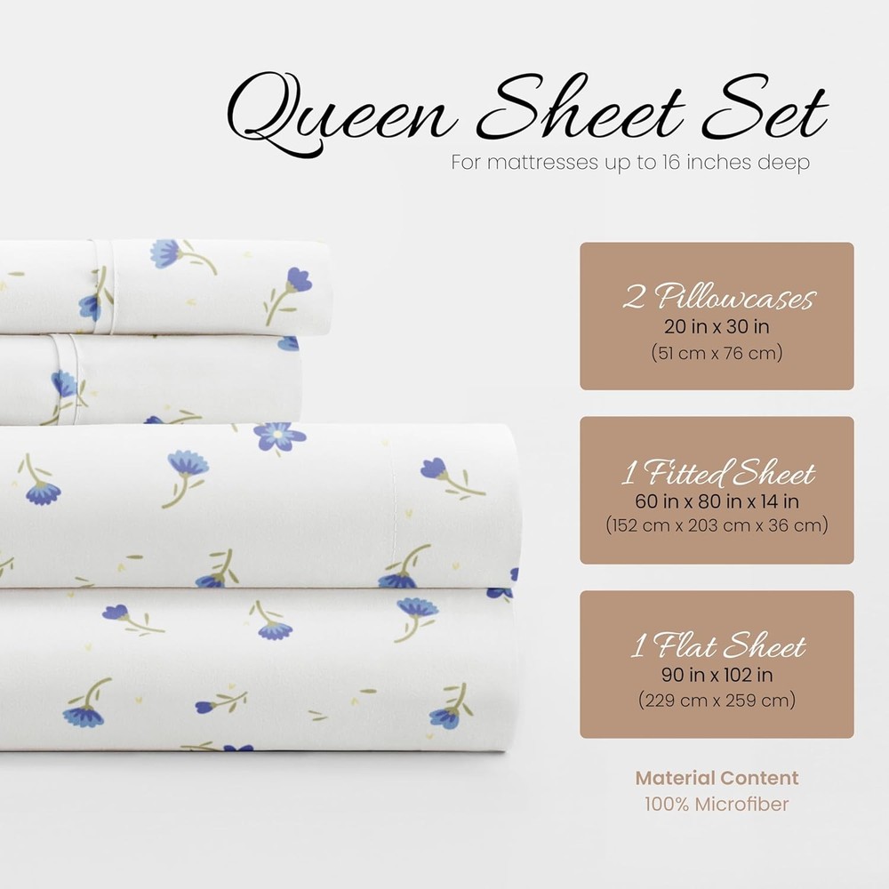 Linen Market Double-Brushed Patterned Queen, Soft Floral Light Blue π Product Features β¨ LUXURIOUS SLEEP: Get ready to sleep in cloud-like comfort every night with your new luxurious queen sheets. Softer than cotton sheets, cozy and comfortable, they're the perfect way to treat yourself to a sound sleep. β¨ WHAT MAKES OUR SHEETS DIFFERENT: Most bed sheet fabrics are only brushed once to soften them up, but to make sure you get the best nightβs sleep, we brush our fabric TWICE. Tuck yourself into these cloud-like sheets and soundly drift off to sleep every night. β¨ EASY SHEET CHANGES: Changing sheets on deep beds is frustrating, but not with our 16β deep pocket sheets. Our snug-fit design allows for you to easily put your fitted sheets on without the hassle of wrestling down every corner. This set includes a fitted and flat sheet, and two pillowcases. β¨ CONFIDENTLY DURABLE: Pets, kids, and family life can take a hard toll on sheets and other bedding, but our microfiber queen size sheets are made to last. Expert stitching and seams ensure that your durable queen sheet set stands up to wear and tear for years to come. β¨ BEAUTIFUL BED SHEETS: Our unique Soft Floral print is sure to add a touch of elegance and brighten up your bedroom. Check all 19 of our popular color options in all 5 size options to find the perfect match for every bedroom in your home. π¦ Shipping: Shipping is complimentary within the lower 48 US States. π π« We Do Not Ship to PO/APO Boxes, HI or Alaska π We Do Not Ship Outside of the Continental US β± All items ship within 24-72 hours of Payment π For large items that require Freight shipping, a valid phone number is required to call and schedule your delivery π Terms of Sale and Feedback: β Feedback is extremely important to us and eBay π If you are satisfied with our transaction, please take a moment to leave Positive Feedback. YOUR Satisfaction is our #1 Priority! β If there are any issues, PLEASE contact us BEFORE leaving a neutral or negative rating so that we may resolve any concerns. π We PROMISE we can make you happy if you give us a fair chance. π Returns / Concerns: π All items qualify for returns within 14 - 30 days of receipt. Buyer is responsible for return shipping on any item that is not damaged. π Please be sure this is an item you want before making your purchase. Customer Satisfaction is our TOP priority! π¦ All items are IN STOCK at time of listing. π Inventory on eBay changes constantly and it is impossible to maintain a perfectly accurate count of all items. πβοΈ Please do not penalize us if we have to issue you a refund! π Thank You For Your Business!