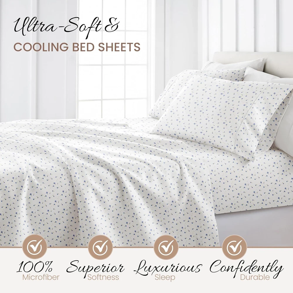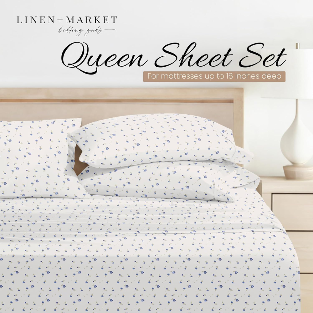 Linen Market Double-Brushed Patterned Queen, Soft Floral Light Blue Product Details Size: Queen Material: Microfiber Color: Soft Floral Light Blue Pattern: Patterned Brand: Linen Market Number of Pieces: 4 Special Feature: Wrinkle Resistant Style: Modern Included Components: 1 Flat Sheet, 1 Fitted Sheet, 2 Pillow Cases Closure Type: Pull-On Thread Count: 20000 Age Range (Description): Adult Product Care Instructions: Machine Wash Theme: Floral Cartoon Character: Floral Seasons: All Item dimensions L x W x H: 102 x 90 x 1 inches Item Weight: 2.89 Pounds Pillowcase Quantity: 2 Unit Count: 1.0 Count Sham Quantity: 2 Item Display Dimensions: 102 x 90 x 1 inches Manufacturer: ienjoy Home Product Dimensions: 102 x 90 x 1 inches Item Weight: 2.89 pounds Item model number: IEH-4PC-SFL-Q-LB Fabric Type: 100% Microfiber Finish types: Double Brushed Microfiber Perfume: Light Blue - Soft Floral Assembly required: No Batteries required: No Import: Imported 100% Microfiber Imported LUXURIOUS SLEEP: Get ready to sleep in cloud-like comfort every night with your new luxurious queen sheets. Softer than cotton sheets, cozy and comfortable, they're the perfect way to treat yourself to a sound sleep. WHAT MAKES OUR SHEETS DIFFERENT: Most bed sheet fabrics are only brushed once to soften them up, but to make sure you get the best night’s sleep, we brush our fabric TWICE. Tuck yourself into these cloud-like sheets and soundly drift off to sleep every night. EASY SHEET CHANGES: Changing sheets on deep beds is frustrating, but not with our 16” deep pocket sheets. Our snug-fit design allows for you to easily put your fitted sheets on without the hassle of wrestling down every corner. This set includes a fitted and flat sheet, and two pillowcases. CONFIDENTLY DURABLE: Pets, kids, and family life can take a hard toll on sheets and other bedding, but our microfiber queen size sheets are made to last. Expert stitching and seams ensure that your durable queen sheet set stands up to wear and tear for years to come. BEAUTIFUL BED SHEETS: Our unique Soft Floral print is sure to add a touch of elegance and brighten up your bedroom. Check all 19 of our popular color options in all 5 size options to find the perfect match for every bedroom in your home.