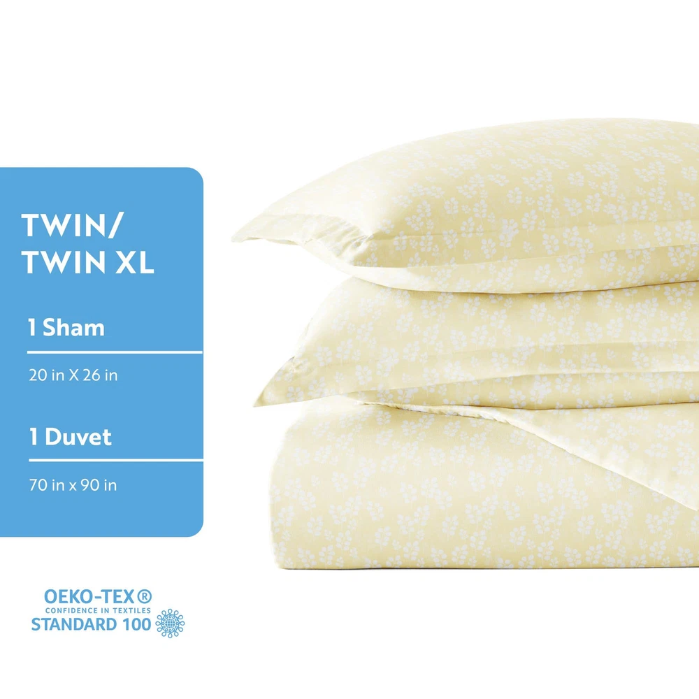 This collection is designed with your comfort in mind. Made of the finest double-brushed microfiber yarns creating a new standard in softness and breathability. Our premium yarns are times more durable than cotton, completely -free, and perfect for all seasons. LUXURIATE IN UNMATCHED COMFORT: Elevate your sleep experience with our exquisitely soft and cozy duvet cover queen. Crafted from premium microfiber, it envelops you in a cocoon of comfort, ensuring a blissful night's rest. TRANSFORM YOUR BEDROOM WITH STUNNING STYLE: Be your own inner interior designer with our wide array of captivating prints and elegant solid colors. From vibrant florals and farmhouse styles to geometric patterns, our duvet covers effortlessly breathe life and sophistication into any bedroom. UNCOMPROMISING QUALITY AND DURABILITY: Our duvet cover set is meticulously crafted to ensure long-lasting performance. With fade, stain, and shrink resistance, it retains its impeccable appearance wash after wash, offering you the perfect blend of luxury and durability. EFFORTLESS MAINTENANCE FOR BUSY LIFESTYLES: We understand the demands of modern life, which is why our duvet cover set is designed for convenience. Machine washable in cold water and quick-drying on tumble dry low, it saves you valuable time and effort, allowing you to spend more moments enjoying the comfort and beauty it brings to your sleep sanctuary. THOUGHTFUL DESIGN FOR CONVENIENCE: Our duvet cover set includes corner ties to secure your comforter in place, preventing it from shifting or bunching up inside.