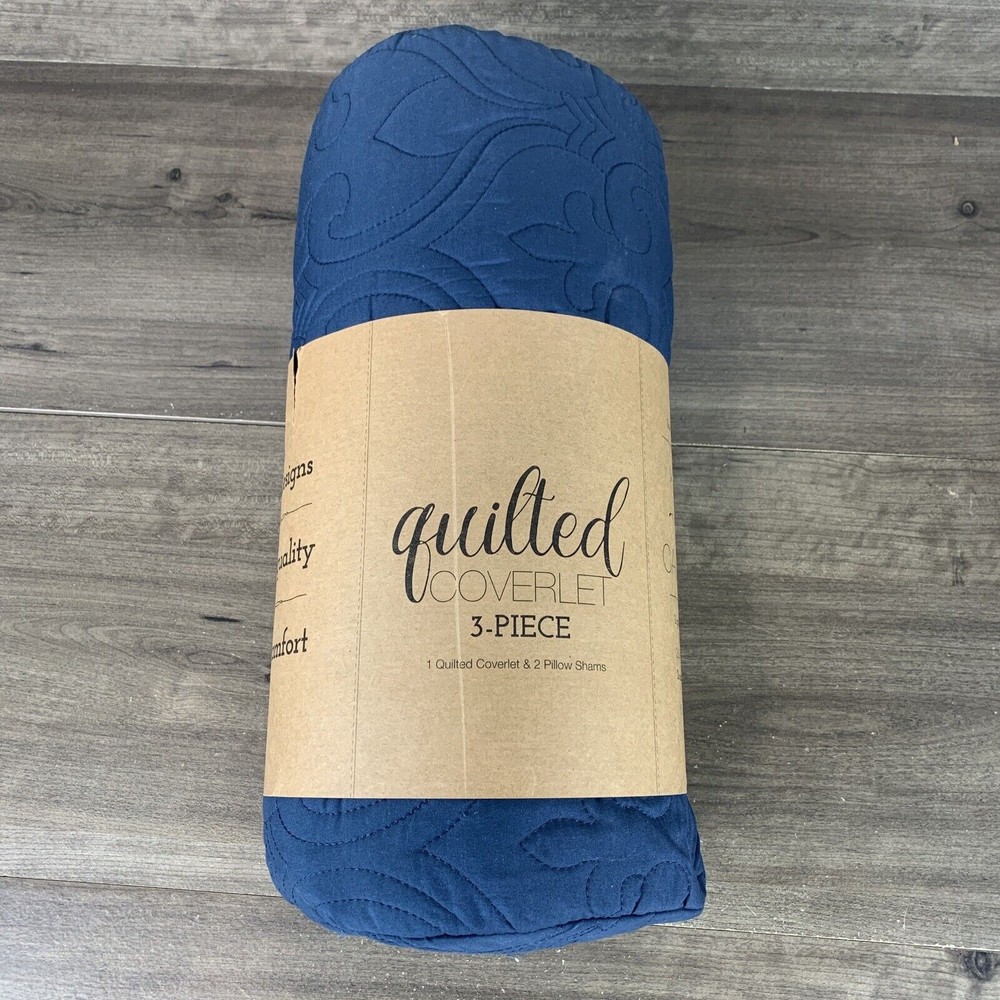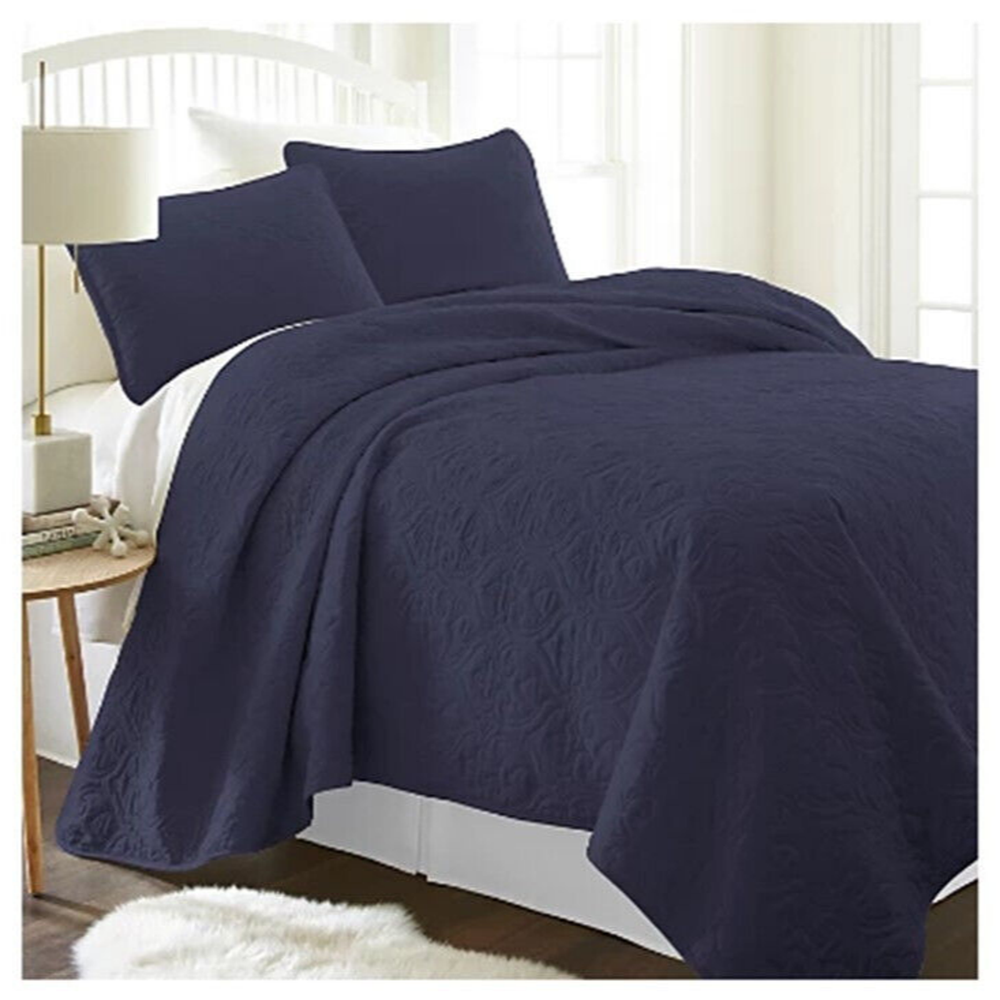 <![CDATA[<div>DE146 | Line 8963 iEnjoy Home Damask Patterned King/California King Quilted Coverlet Set - Navy Blue DESCRIPTION Add a touch of vintage charm to your tranquil bedroom oasis with the softness of this 3-piece quilted coverlet set by ienjoy Home®. Woven of the finest imported double-brushed yarns for a new level of indulgence and breathability, soft-to-the-touch microfiber will stay smooth and wrinkle free for years of easy-care comfort. Available in a variety of coordinating colors for an irresistibly luxurious impression. * Includes coverlet and 2 shams * Made of microfiber * Double-brushed for outstanding comfort * Hypoallergenic and antimicrobial for allergy sufferers and sensitive skin * Machine washable * Imported WEIGHT 7.44 lbs. (2.46 kgs.) Note: Please view ALL photos for further details. Includes all item(s) seen in picture(s) ONLY. Actual item pictured. Color may vary on different monitors. Original packaging/box may come damaged or has stained.