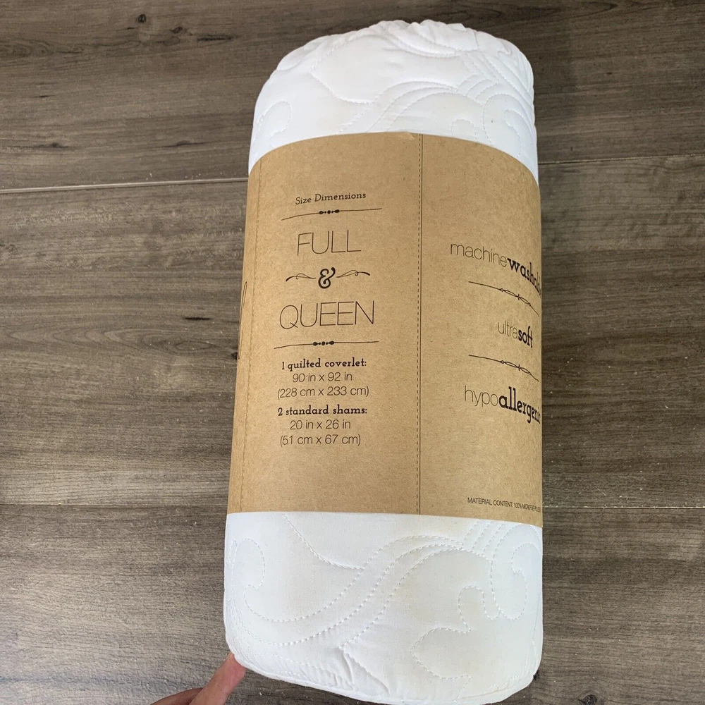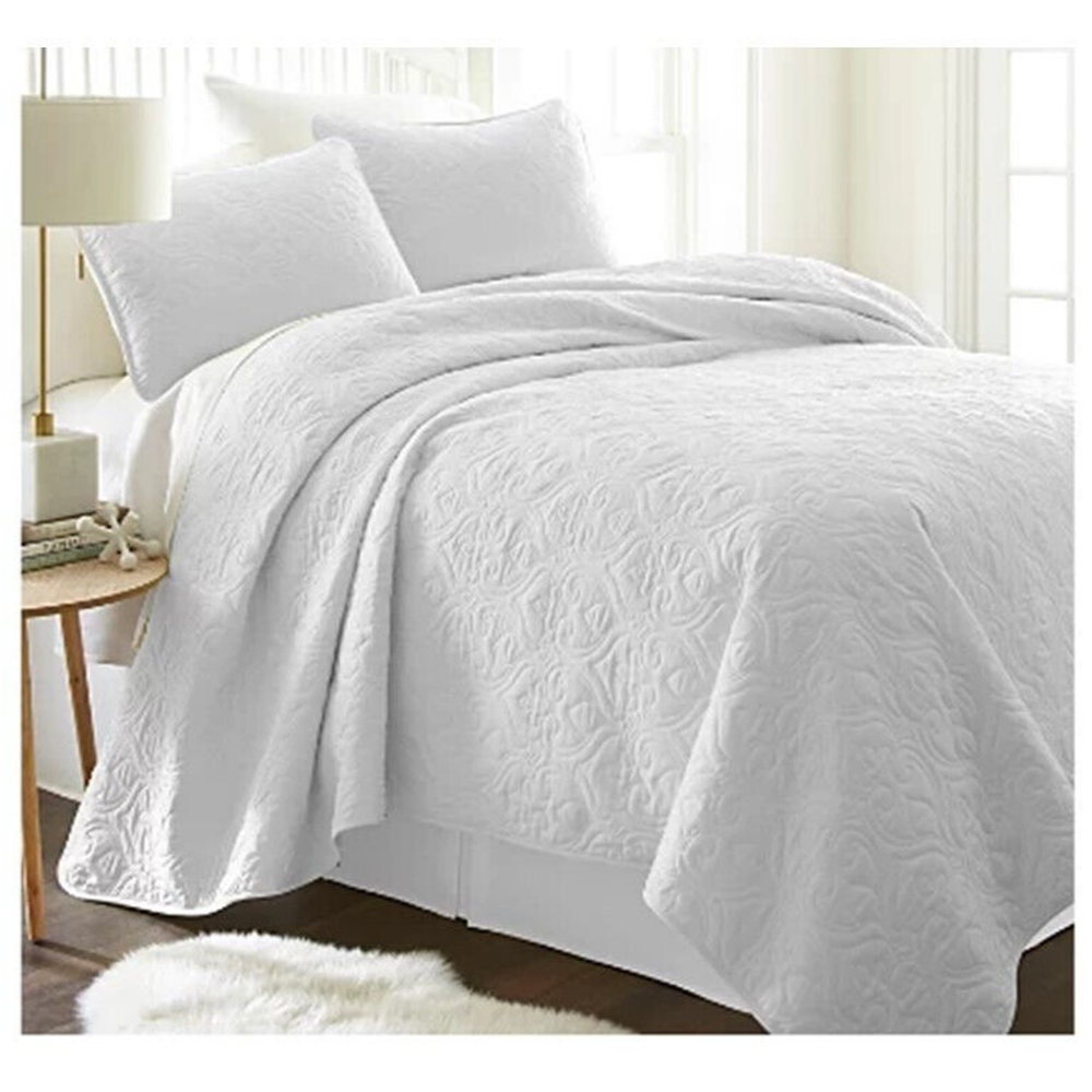 <![CDATA[<div>DE151 152 | Line 8968 8969 iEnjoy Home White Damask Patterned Quilted Coverlet Set With Pillow Shams Queen - White About this item: Add a touch of vintage charm to your tranquil bedroom oasis with the softness of this 3-piece quilted coverlet set by ienjoy Home®. Woven of the finest imported double-brushed yarns for a new level of indulgence and breathability, soft-to-the-touch microfiber will stay smooth and wrinkle free for years of easy-care comfort. Available in a variety of coordinating colors for an irresistibly luxurious impression. * Includes coverlet and 2 shams * Made of microfiber * Double-brushed for outstanding comfort * Hypoallergenic and antimicrobial for allergy sufferers and sensitive skin * Machine washable * Imported * Coverlet : 90" x 92" (228cm x 233cm) * 2 Standard Shams : 20" x 26" (51cm x 67cm) WEIGHT 6.21 lbs. DIMENSIONS * Width: 7.50" * Depth: 6.50" * Height: 16.00" Note: Please view ALL photos for further details. Includes all item(s) seen in picture(s) ONLY. Actual item pictured. Color may vary on different monitors. Original packaging/box may come damaged or has stained.