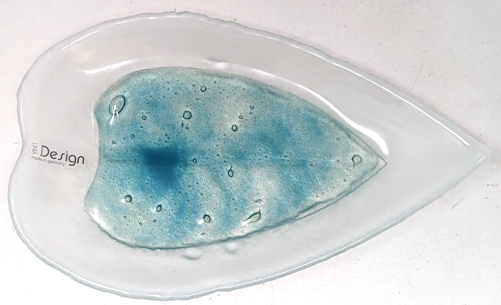 Linia Design Studio Art Frosted Fused Glass Leaf Serving Dish Tray Germany KB23. The dish has been used, but is in good condition. There is minor wear (slight scuff marks/scratches) from use and age. It comes from a smoke free home. Please see photos for more details. Item comes as shown. *Please note that vintage/antique items may have standard wear from age and/or use. Length: 9 3/8" Width: 5 3/4" Height: 7/8" Please see my other listings for more collectibles. If you are a seasoned or new collector, be sure to add my shop in your favorites because I will be listing new housewares, books, collectibles, jewelry, figurines, etc DAILY! #080923 BL