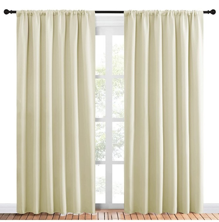 NICETOWN Living Room Curtains, Home Decorations Thermal Insulated Solid Rod Pocket Blackout Drapes for Cafe (Beige, One Pair, 70 x 84-inch)