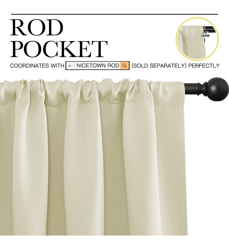 NICETOWN Living Room Curtains, Home Decorations Thermal Insulated Solid Rod Pocket Blackout Drapes for Cafe (Beige, One Pair, 70 x 84-inch)...