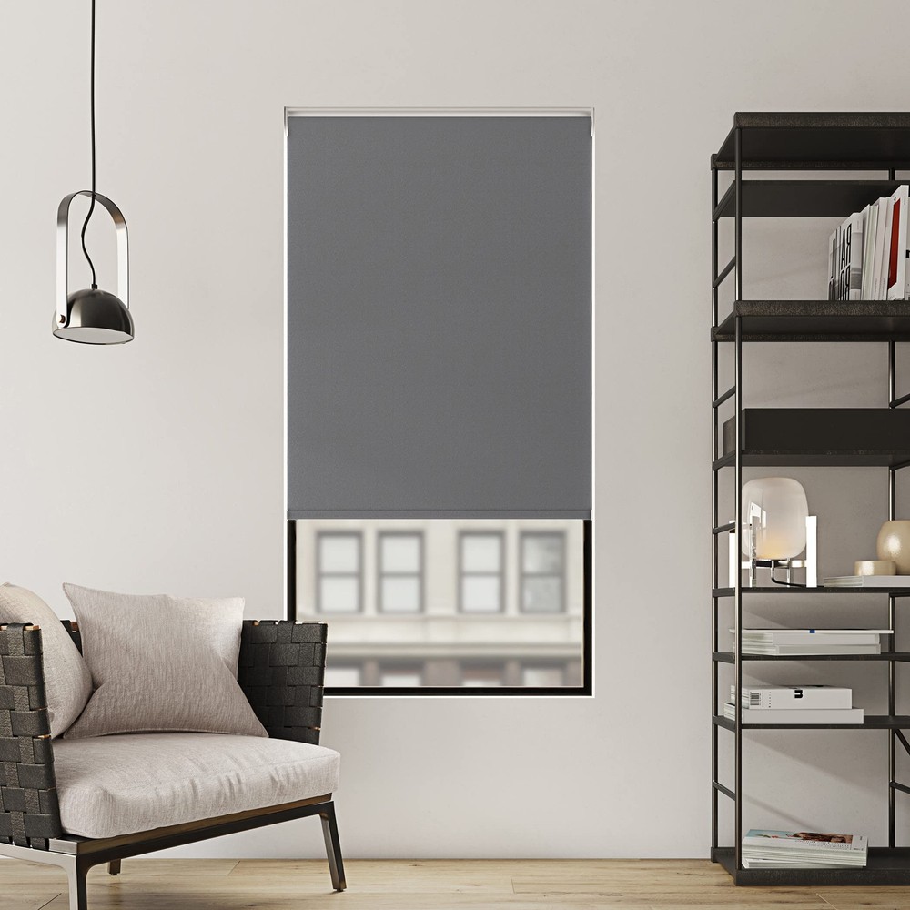 Lodi Textured 100% Blackout Cordless Roller Shades add sophistication and function to your windows. Total Blackout technology is laboratory tested to block out 100% of light, reduce outside noise by up to 50%, and decrease energy lost through your windows by up to 45%. Comfort is optimized with thermal properties that help keep summer heat and winter chill out of your home. Best for Certified cordless design with included handle pull for easy adjustment. Use in your entertainment room to eliminate screen glare and reduce distracting outside noise, or in your bedroom for enhanced privacy and a sounder, more uninterrupted sleep. Mounting hardware included for inside or outside mount as desired. Sold as individual panels measuring 23" width by 72" length in color gray. Measure carefully before selecting your desired size and quantity. Rod not included. Pull shade down until fully extended. Spot clean with a nonabrasive soft damp cloth. Rinse out cloth thoroughly as needed while cleaning. Leave shade fully extended until completely dry. Blackout technology blocks out 100% of light Energy Saving design reduces window energy loss by up to 45% Up to 50% noise reduction helps you get a sounder, more uninterrupted sleep Thermal properties help regulate the temperature of your home Certified Best for cordless control with included handle pull for easy adjustment