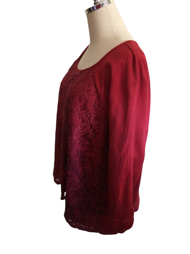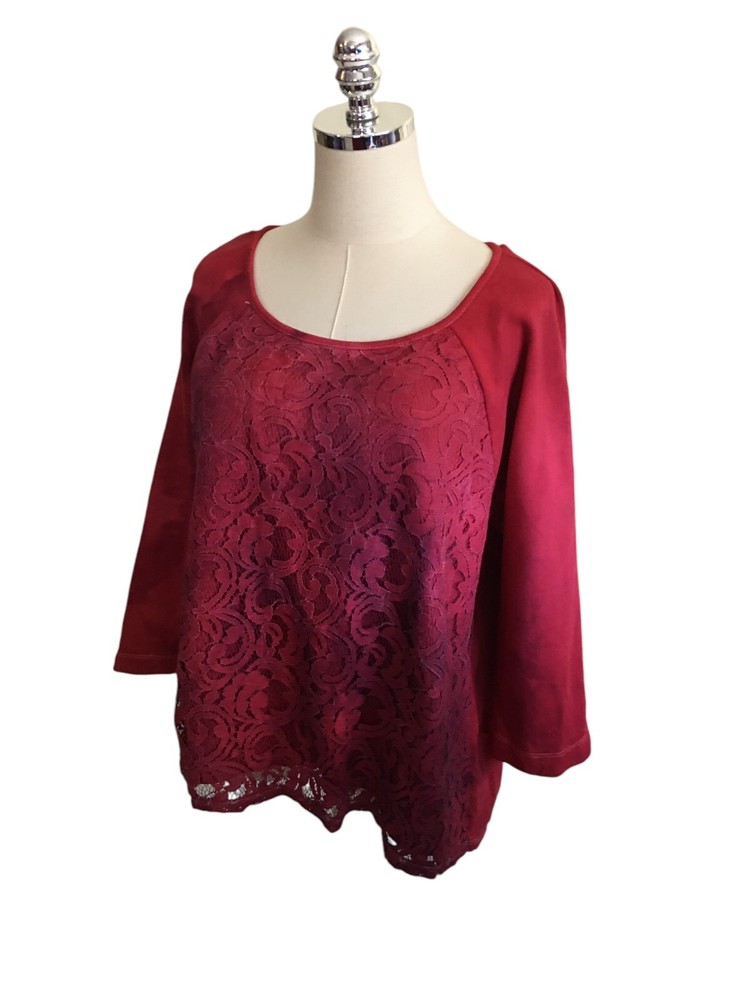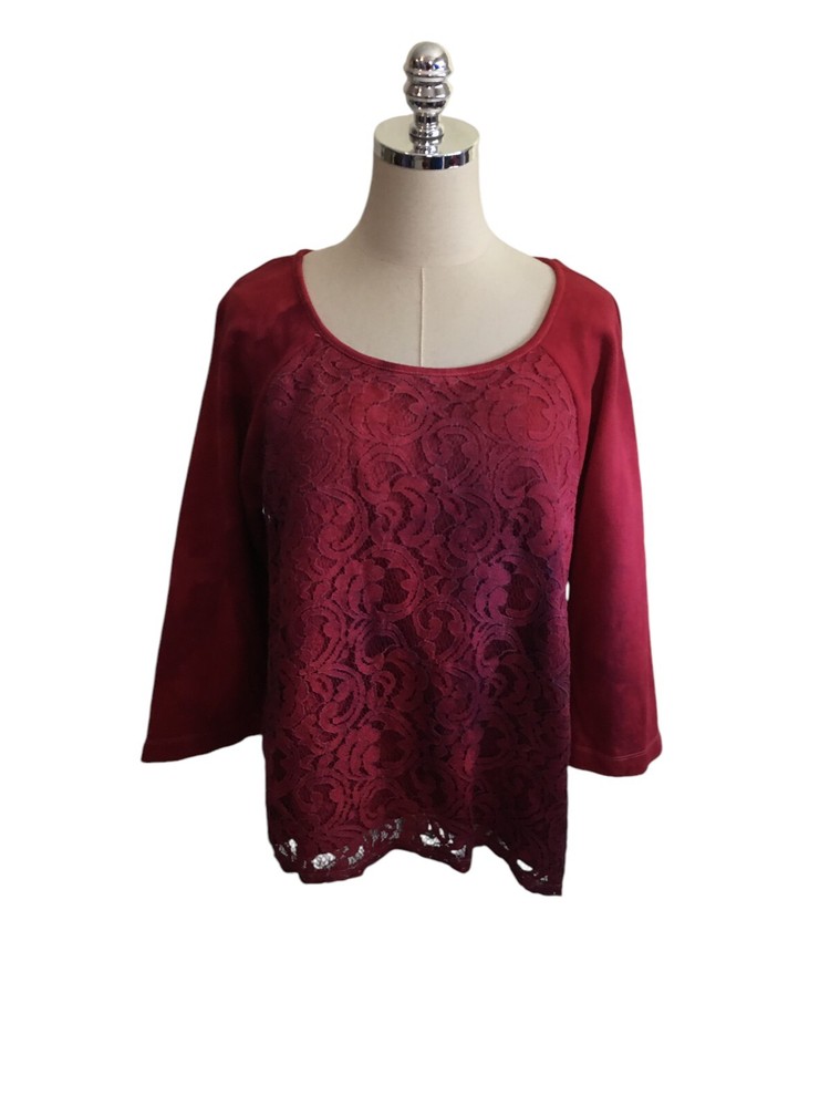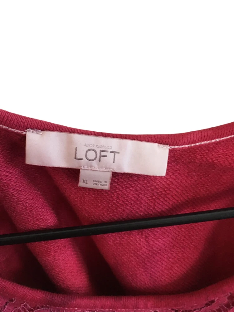 Loft Top Women's Size XL Customized Red Tie Dye Lace Cotton Long Sleeve Chest: 45" Sleeves: 21" Total Length: 22" The item is Preowned, great condition. Please see all pictures as they are also part of the description. You will receive the exact item that you see in the photos. Please ask any questions that you may have as I am happy to answer.