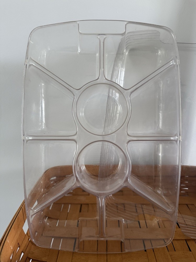 This basket and plastic divider liner is in good condition.There are no signs of cracks in either piece.There are a few minor marks on the basket itself, see photos for details....