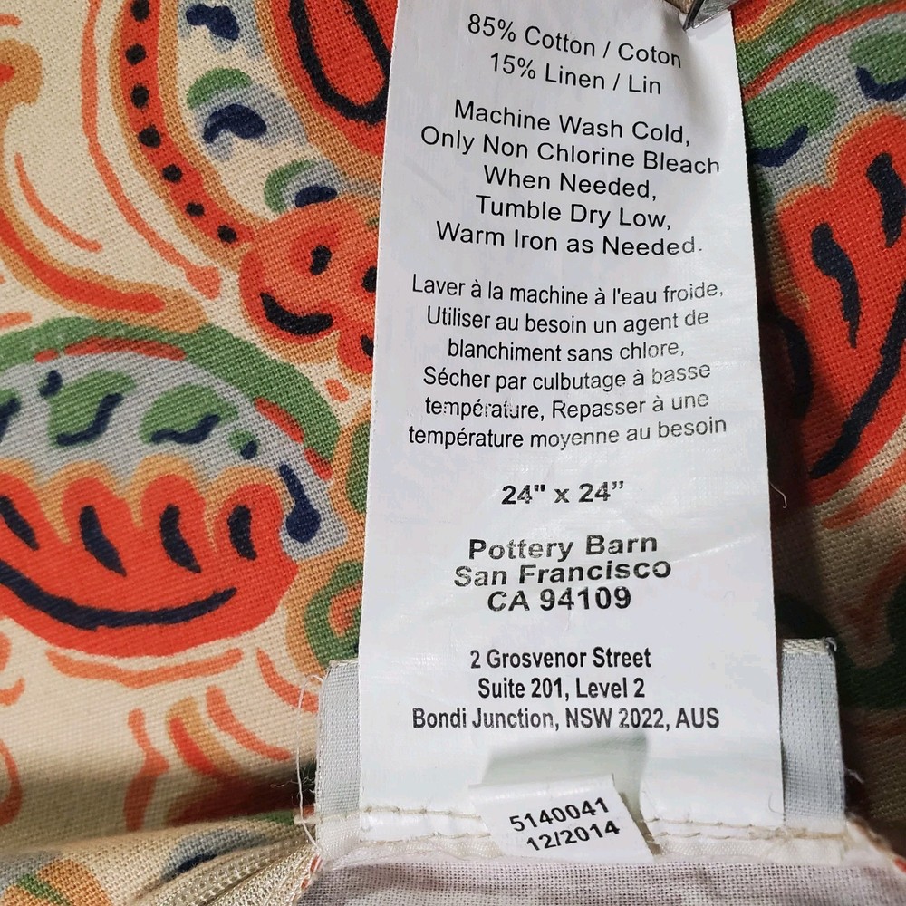 This is a set of 2 Pillow Covers from Pottery Barn in the Harland pattern, measuring 24" x 24". The design features a paisley pattern. The item is described as hard to find (HTF).