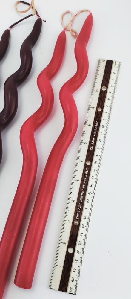 Here is a lot of six hand dipped twisted swirl candle sticks, four are red and two are burgundy. They measure a little over 14 inches long. These candles are in good condition never used. Please check my photos to see them for yourself and check out my Ebay store to see other items I'm selling. Thanks for looking!