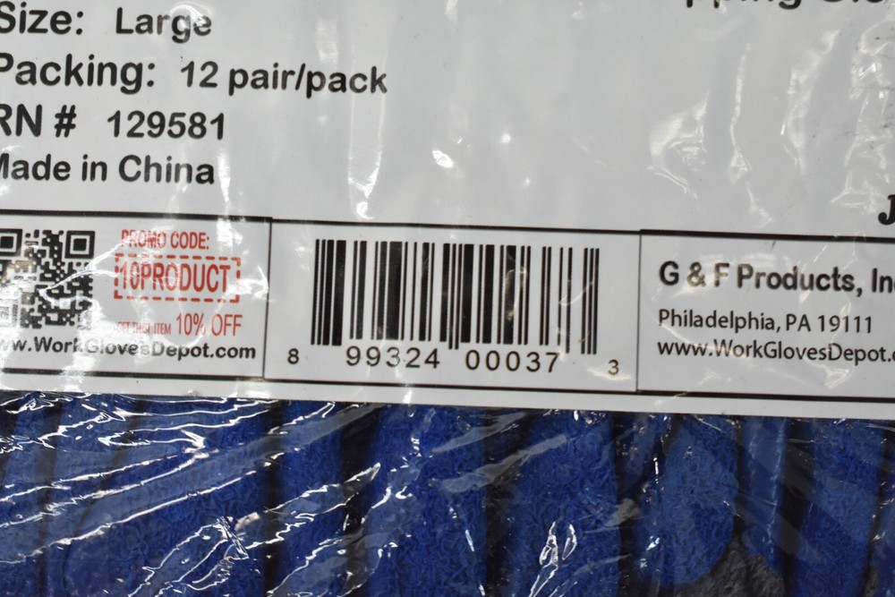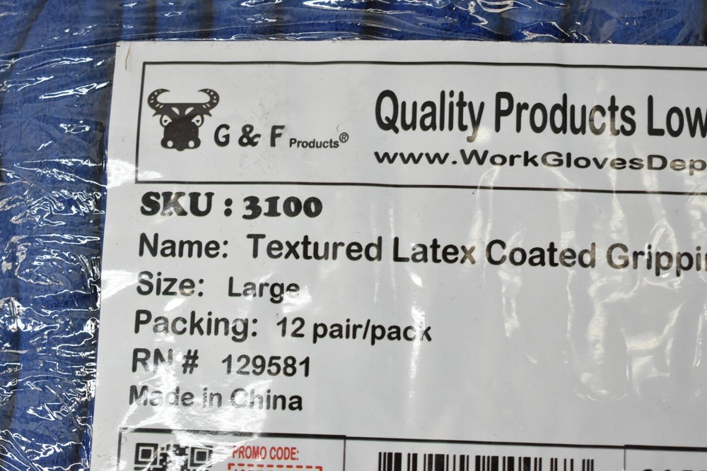 Lot of 12 Pairs G&F Products Premium Heavy Texture Double Dipped Latex Gloves 12 pairs of large sized gloves. Why Shop with US? Customer Service is our #1 Priority Excellent Pricing Excellent Feedback Quality Assurance Fast Shipping Feedback If you are completely satisfied with your purchase please leave us positive feedback. If there is an issue with your order, please understand we are human and we do make mistakes. Please send us a message and give us a chance to resolve before returning or opening a dispute with eBay. Shipping Policy We will ship almost all items within 1 business day. All items ship from Kansas City MO and take 2-5 days depending on shipping service. On rare occasion, USPS or FedEx may delay a package. All carriers have daily pickups, these pickups are by the truckload and individual packages do not receive an arrival scan. This helps for faster delivery, but can cause a delay in first scan. Please understand this is out of our control. We will also choose least expensive shipping option in most cases. If you order/pay before 12 PM CST we will try our best to get your package out same day. If you would like an express delivery option, please message us before purchasing, we can update the listing to reflect an express option. (Additional Shipping charges will apply) Disclaimer Bistatebusiness is not sponsored by or affiliated with the brands associated with the products being sold. Furthermore, there is no guarantee or assumption that we can provide support or offer any warranty on this product after purchase. Bistate Business Copyright © Bistatebusiness