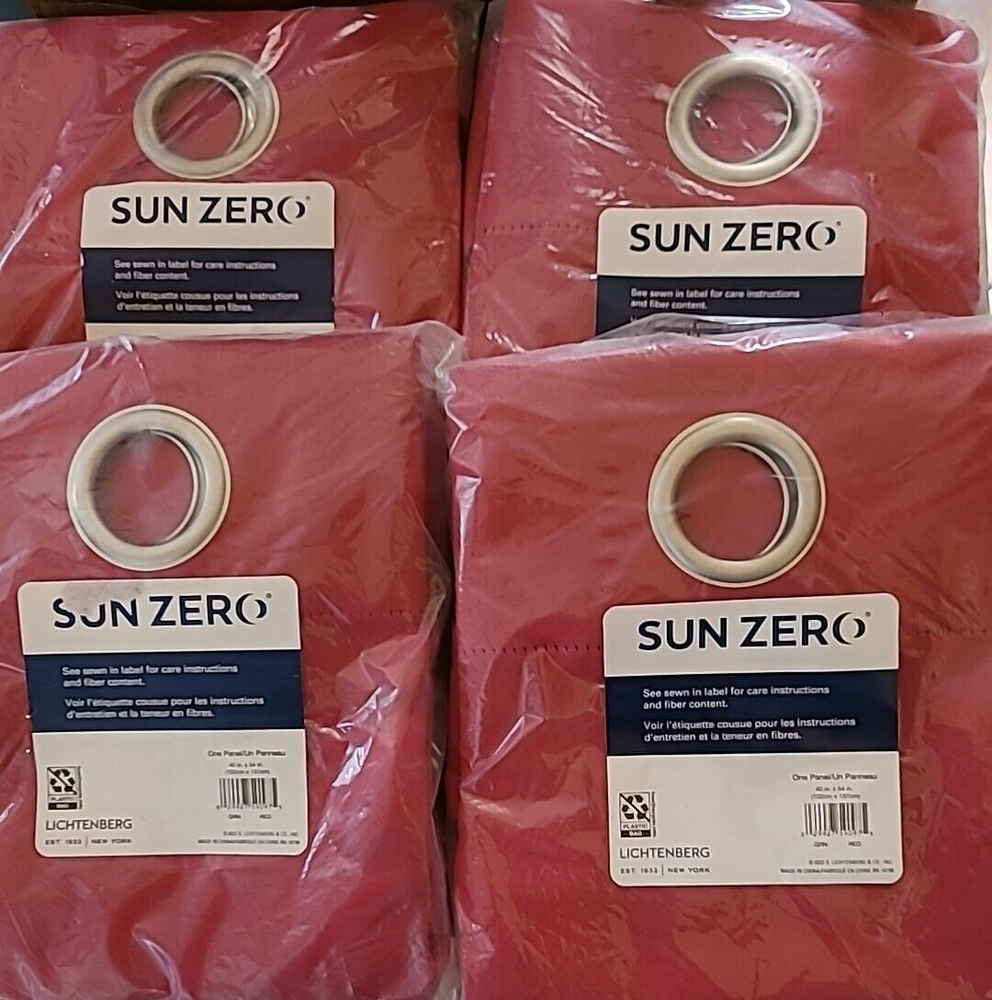 1 PANEL 40" X 54" X 2 YOU WILL GET 2 PANEL. Add a touch of elegance to your living space with this set of two Sun Zero Nolan blackout curtain panels. These panels feature a solid red color that adds a pop of color to any room. Measuring 40 inches in width and 54 inches in length, these panels are perfect for any standard-sized window. The panels feature grommet headings that make it easy to install on any standard curtain rod and offer privacy and light-blocking features that keep your room dark and comfortable. The blackout feature also helps to reduce noise and energy costs, making them perfect for any home. Upgrade your home decor with these beautiful Sun Zero Nolan curtain panels. STR REF B3