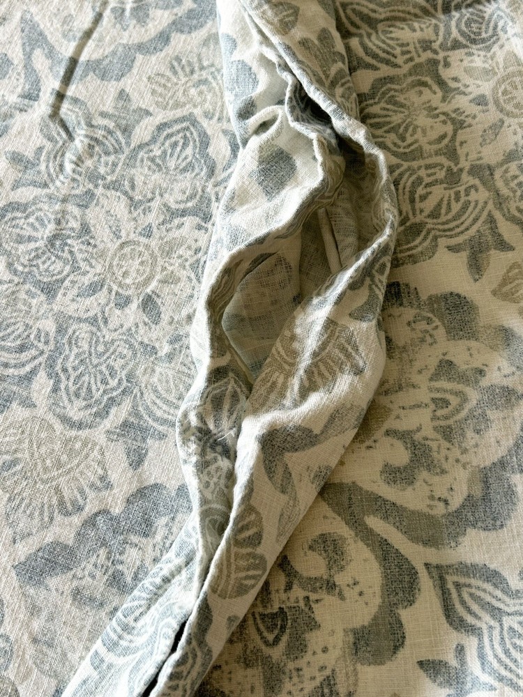 Add a touch of elegance to your bedroom with this lovely king duvet cover. I can’t find any tags, but it looks like it could be Pottery Barn. Also feels like cotton or a cotton linen blend but again, no tags to confirm. The beautiful blue colors and pretty design make it a perfect addition to any bedding collection. The hidden button closure adds a touch of sophistication to the overall design. Measuring at approximately 105x94, this duvet cover is perfect for king-sized beds. Ideal for any bedroom, this duvet cover will bring a fresh look to your space. DISCLAIMER: Most items I list are previously owned and/or vintage, are in as-found condition, and may not be perfect. I do my best to accurately describe all aspects. The colors of an item might be a little different than the photos you see on your monitor. Please carefully review all photos attached, as they are made a part of the listing. I have a smoke-free and pet-free environment once the items enter my home.