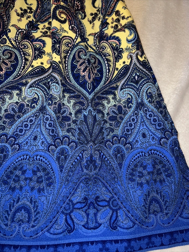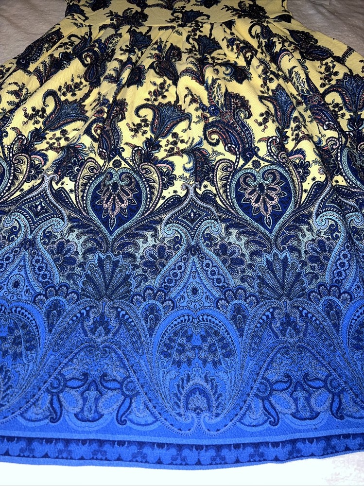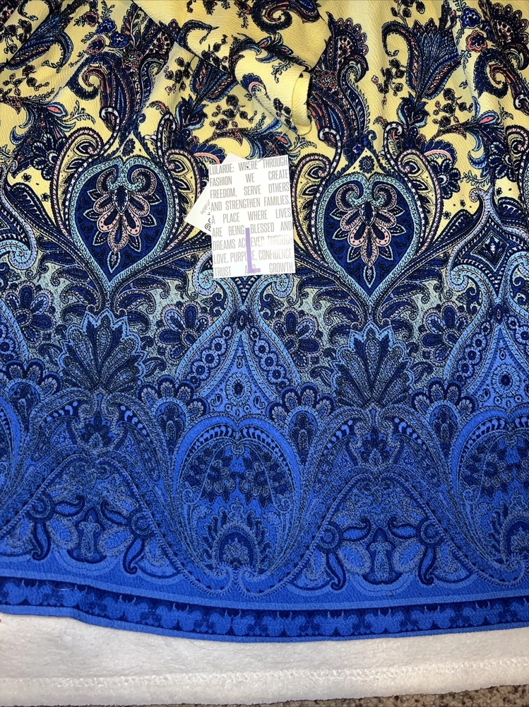 The Amelia dress' stretchy knit fabric is comfortable enough to let you wear the dress all day while having the structure and tailoring that make it sophisticated enough for the office or a fancy night out. The dress features handset box pleats, giving the dress a flowing, full skirt. And before we forget the best part, this dress also has hidden pockets! This dress is everything a girl needs. Major unicorn, rare print! Gorgeous floral Yellow background with blue yellow pink ombré medallion huge Paisley ornate pattern New with tags! Amazing dress with pockets. Must have for your wardrobe! NEW LuLaRoe Floral Amelia Dress 🦄🌹. Fits 14-16 12-14 Large True unicorn! Condition is New with tags. Shipped with USPS 625/5A
