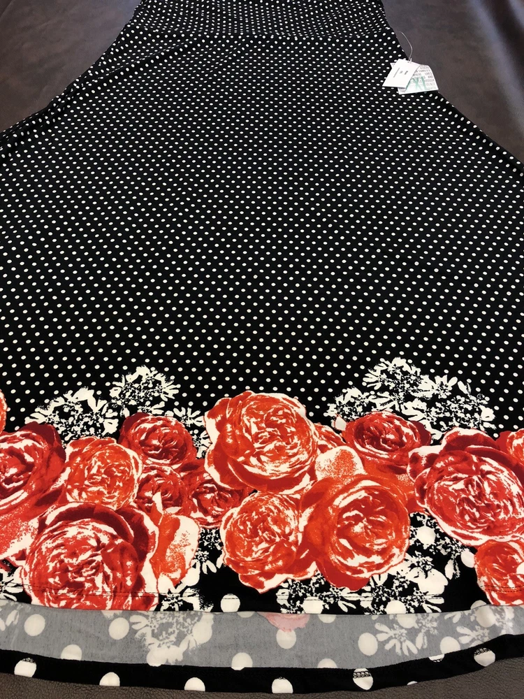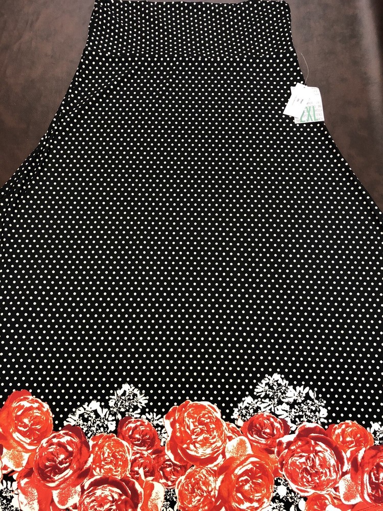 LuLaRoe XL MAXI polka dot and Roses print Skirt Gorgeous colors, Unique dip print Size extra large, XL, 18/20 Pictured 2XL which is also listed, this is for a size XL Stretch Skirt, can also be worn as a Dress Brand New. Condition is New with tags. Shipped with USPS LuLaRoe MAXI Stretch Skirt or Strapless Dress. This has good stretch and it super comfortable. Great as a long skirt or pull up to wear as a dress. Condition is New with tags. Smoke-free home Please message with questions, thanks. Hi 33/31 (4) U 12/42 (1)