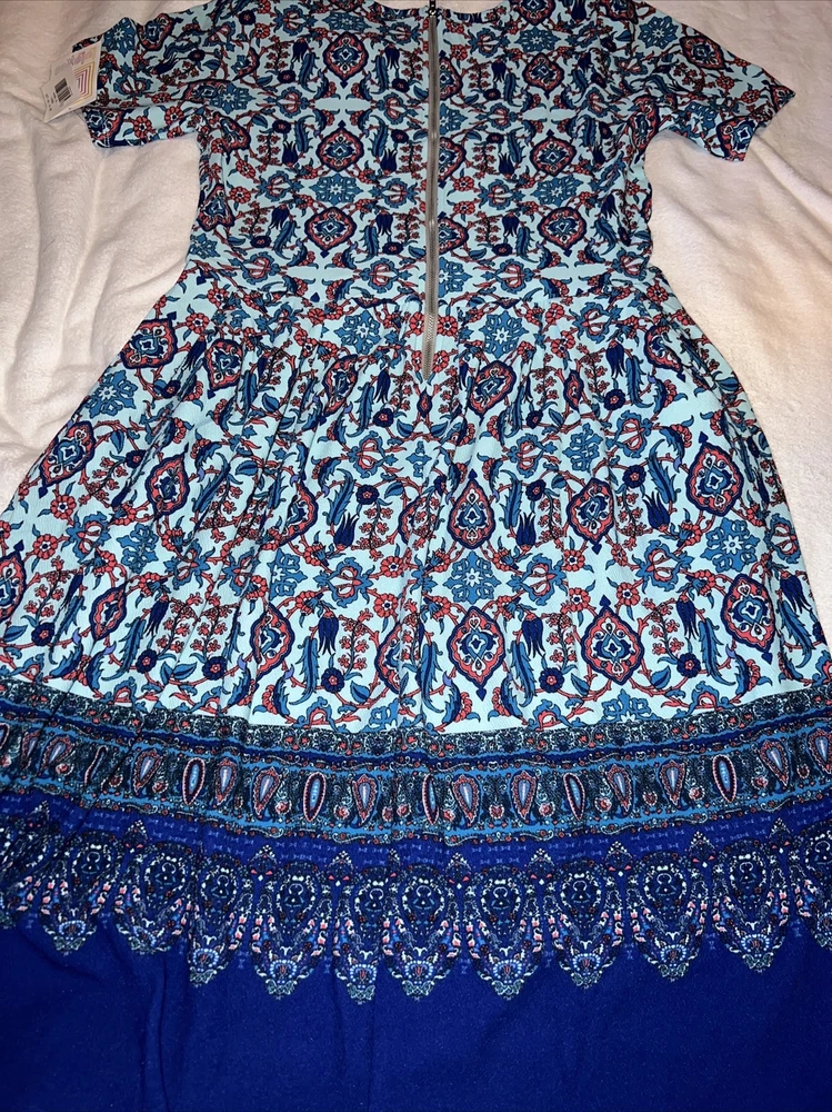 Lularoe XL extra large NWT 16/18 18/20 Women’s Amelia Gorgeous royal blue solid with amazing dip pattern with large ornate paisley damask whimsical floral, ombré fade dip print is sure to impress Blue orange, gorgeous! Major unicorn! The stretchy knit fabric makes it supremely comfy to wear, while the construction of the dress—including the pleated skirt—makes the look sophisticated and put together. Short sleeves and falls to around the knee. Beautiful Pleated Dress New with tags. Please message with questions, thanks! Lularoe items available Azure, Cassie, Jill, Lola, Lucy, Madison, perfect t, classic t, olive, Christy, Morgan, Elizabeth, Amelia, leggings, Nicole, Emily, Marly, Maria, maxi, Olivia, Chloe, Caroline, Sarah, Amber, Lucille, Debra, Stevie, Kristina, Melissa, Riley, Nicki, Presley Moto, Hudson, Iris, Liv, Jessie, Shirley, Randy, Deanne, Amber, Carly and much more. 625M