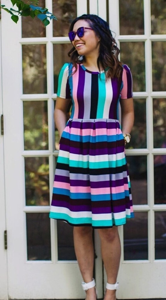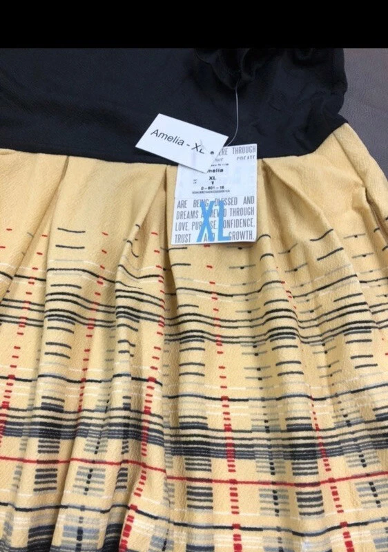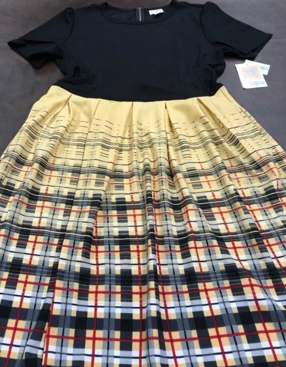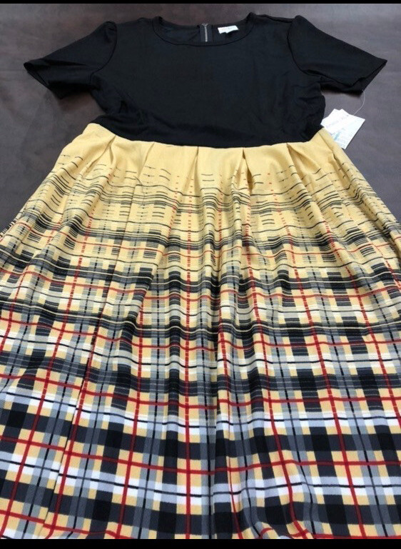 The Amelia dress' stretchy knit fabric is comfortable enough to let you wear the dress all day while having the structure and tailoring that make it sophisticated enough for the office or a fancy night out. The dress features handset box pleats, giving the dress a flowing, full skirt. And before we forget the best part, this dress also has hidden pockets! This dress is everything a girl needs. Major unicorn, rare print! Gorgeous colors, 2 print, solid black bodice and yellow plaid skirt, great colors. Stunning colors! New with tags! Amazing dress with pockets. Must have for your wardrobe! NEW LuLaRoe Extra large 18/20, 16/18 True unicorn! New with tags. Check out my other items Nicole Nicki Riley Morgan olive amber leggings shirts skirt pants sweatshirt hoodie Shirley Sarah cardigan Caroline and much more. 50B