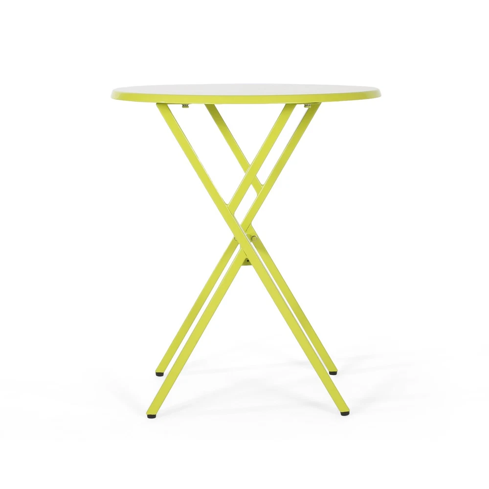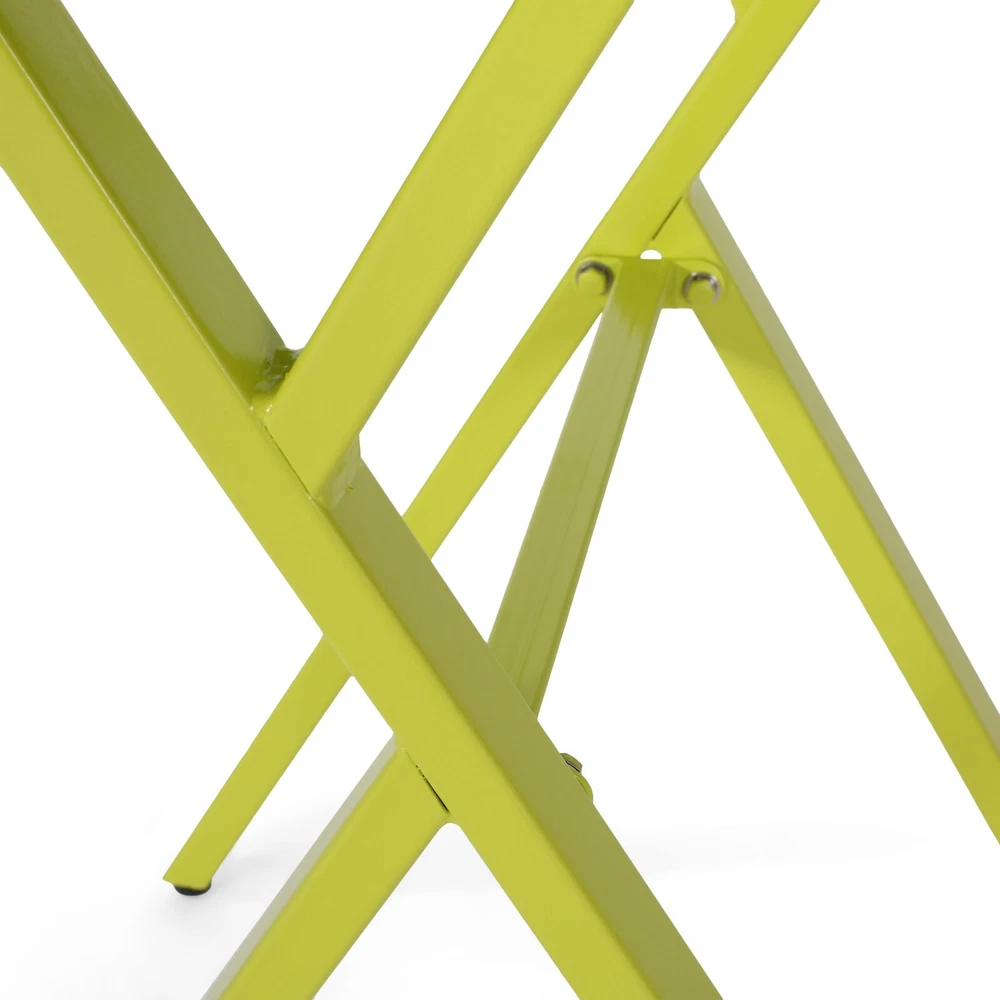 This elegant outdoor bistro set is perfect for an intimate meal with a loved one. Made from a durable iron construction, it’s built to hold up to the elements and bring pleasure for years to come. Ideal for the backyard, patio, or garden. Features: Includes: Two (2) Chairs and One (1) Table Material: Iron Finish: Matte Lime Green Assembly Required Hand Crafted Details Chair Dimensions: 21.00 inches deep x 19.00 inches wide x 29.25 inches high Table Dimensions: 24.00 inches deep x 24.00 inches wide x 28.00 inches high Dimensions: 19"L x 21"W x 29.25"H