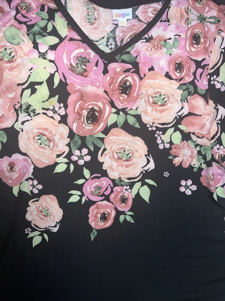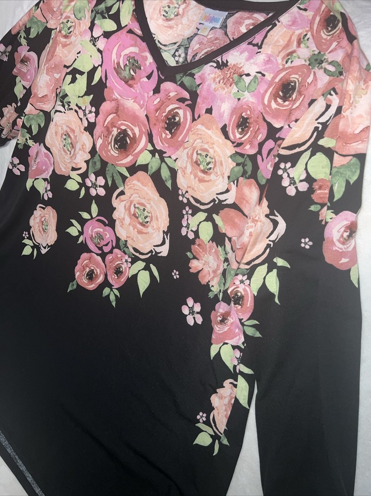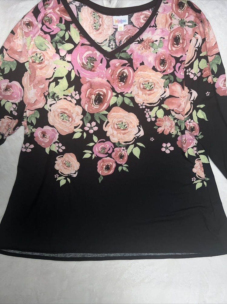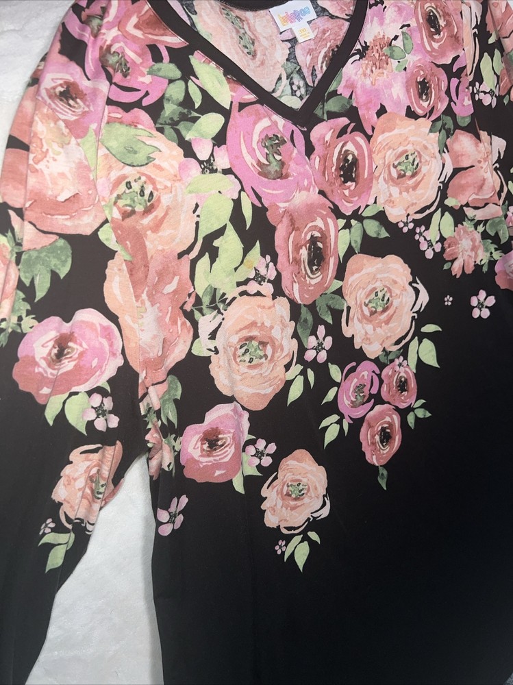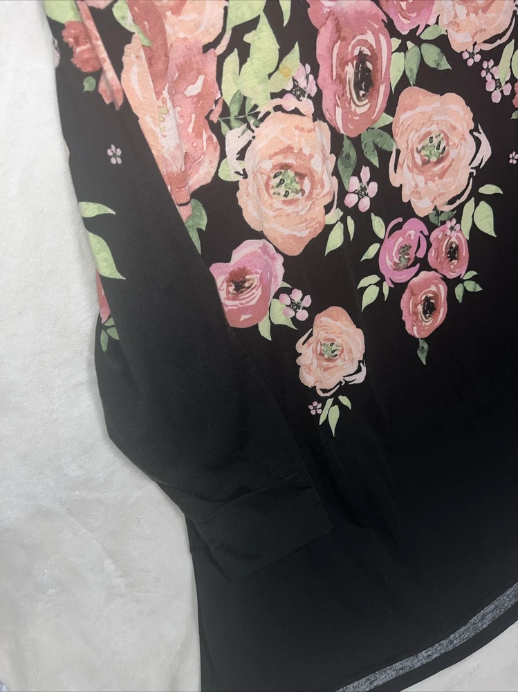 LulaRoe Black pink green Ombre dip large blush roses print Elizabeth Long Sleeved Top 26/28 3XL XXXL 3X 24/26 Tunic Shirt. Great shirt for the roses lover. Great condition 700AA