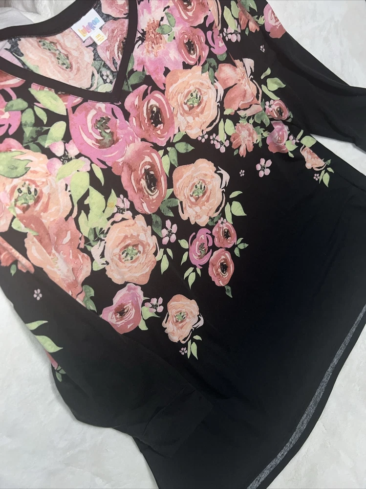 LulaRoe Black pink green Ombre dip large blush roses print Elizabeth Long Sleeved Top 26/28 3XL XXXL 3X 24/26 Tunic Shirt. Great shirt for the roses lover. Great condition 700AA...